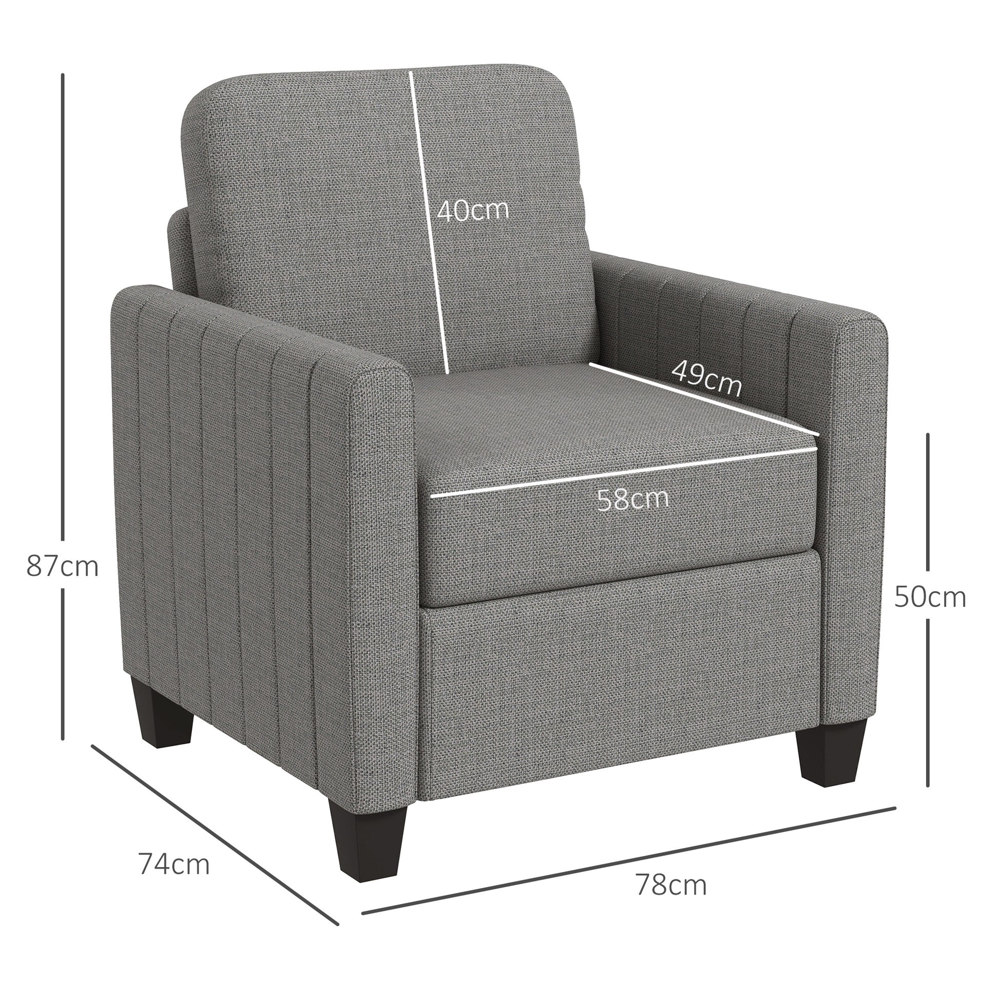 Discover cosy comfort with the HOMCOM armchair for living room, that fits perfectly in your bedroom or as a living room armchair. Enjoy long-lasting relaxation on the high-density foam and innovative pocket springs, all wrapped in a stylish burlap-feel fabric. Plus, the modern channel tufting adds a touch of elegance without overwhelming your space. The accent chair for living room is suitable for a snug chat or a serene reading spot!
