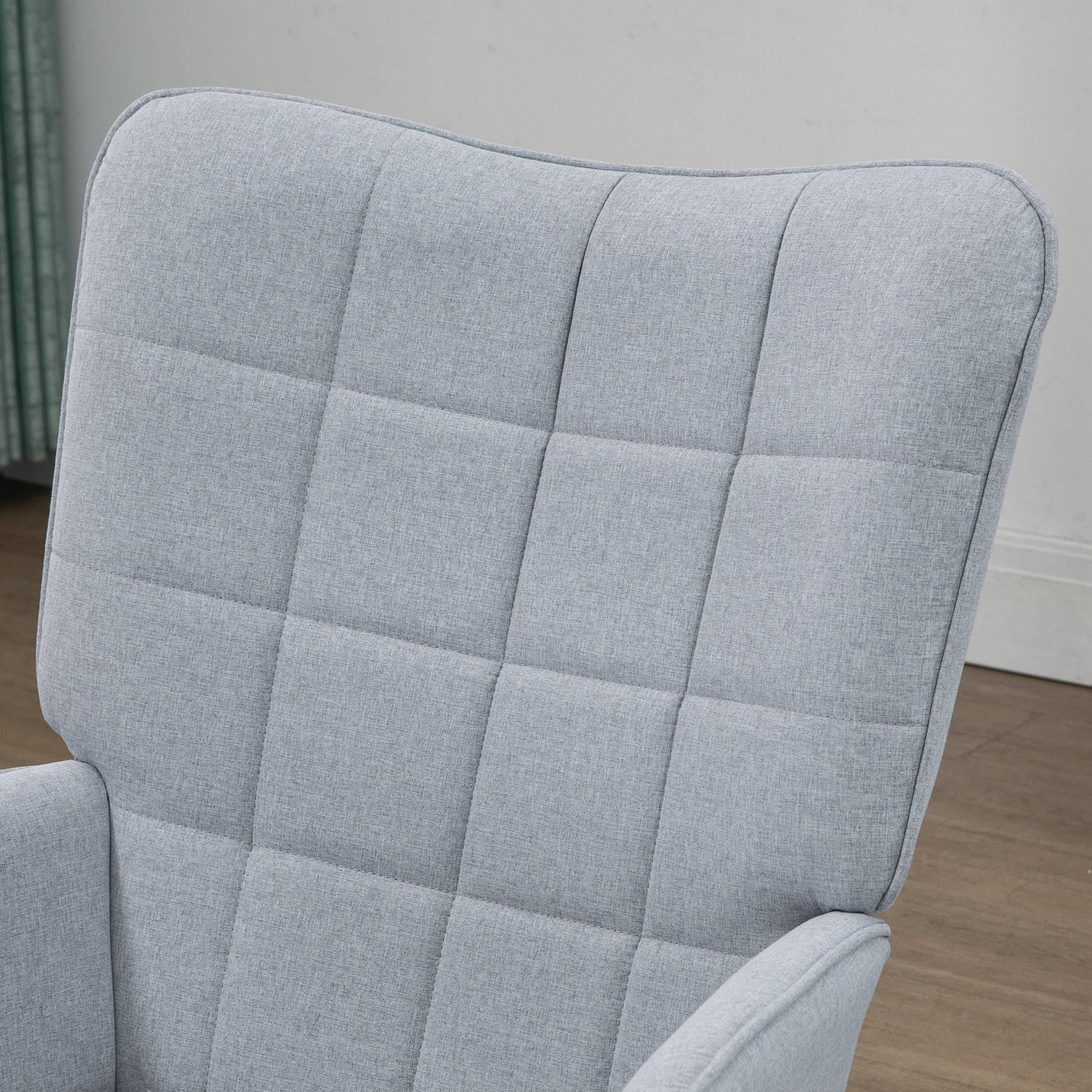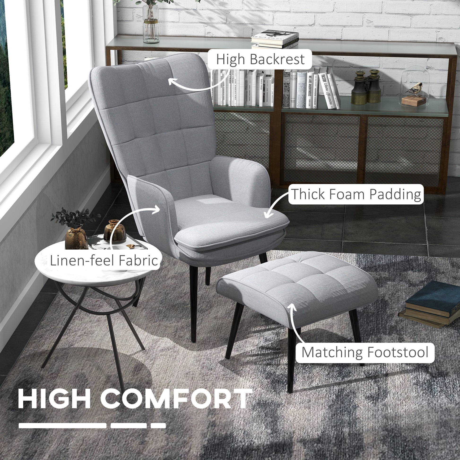 Armchair with Footstool, Living Room Chair, Linen Accent Chair for Bedroom, Home Study, Light Grey