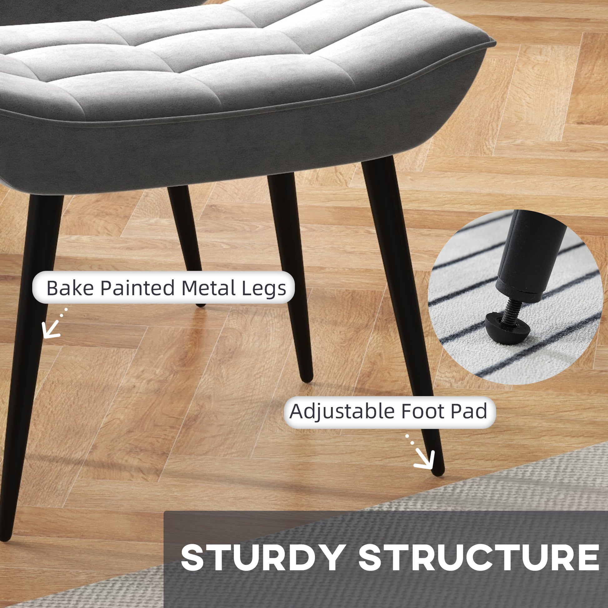 Sit into sophistication, as you relax in this HOMCOM velvet-look chair and stool duo. Comes with a wide armless chair and stool to sit in and elevate the lower body - complete comfort. The velvet-feel upholstery is beautiful and feels great on the skin. Both the office chair no wheels and stool are padded for plenty of comfort. Complete with supportive steel legs, with handy adjustable feet.