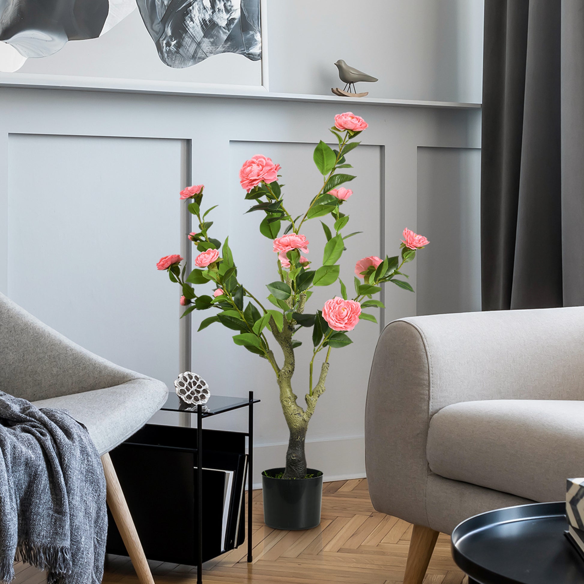 Artificial Plant Camellia Flower in Pot, Fake Plant for Indoor Outdoor, 95cm, Pink