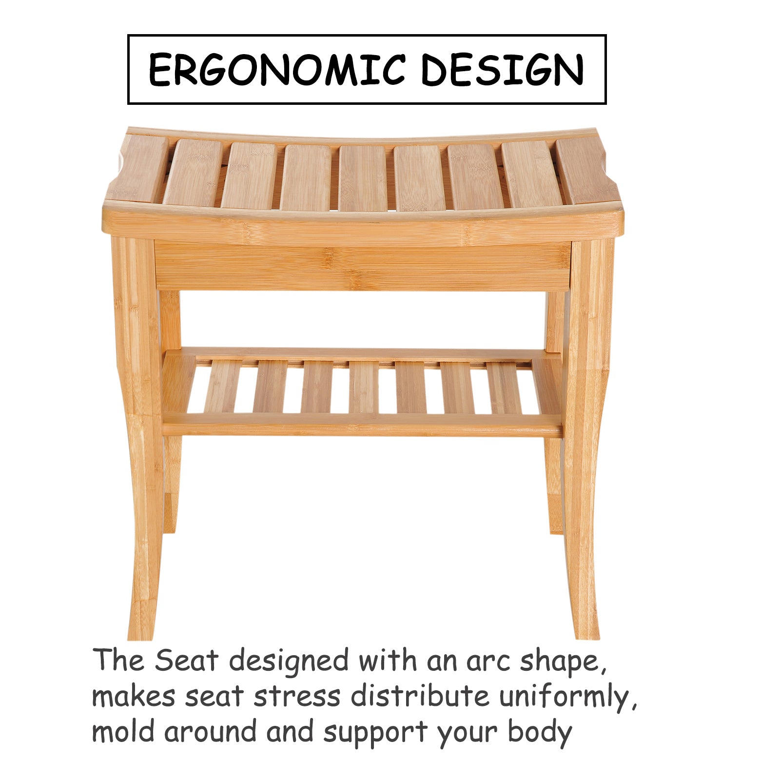 Natural Wooden Bamboo Bathroom Shower Bench w/ Lower Shelf