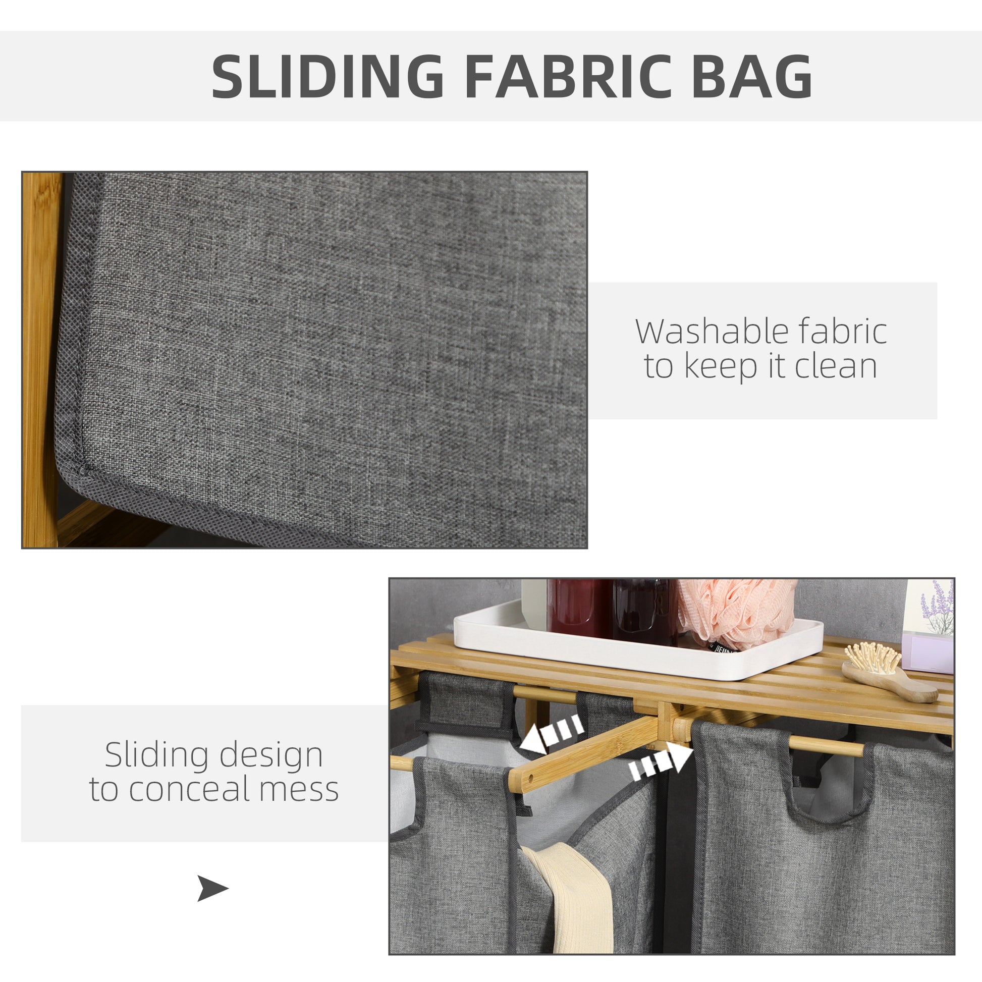 Bamboo Laundry Basket, Laundry Hamper with Shelf, Pull-out Bags for Bedroom, Bathroom, Laundry Room, 64 x 33 x 73 cm, Grey