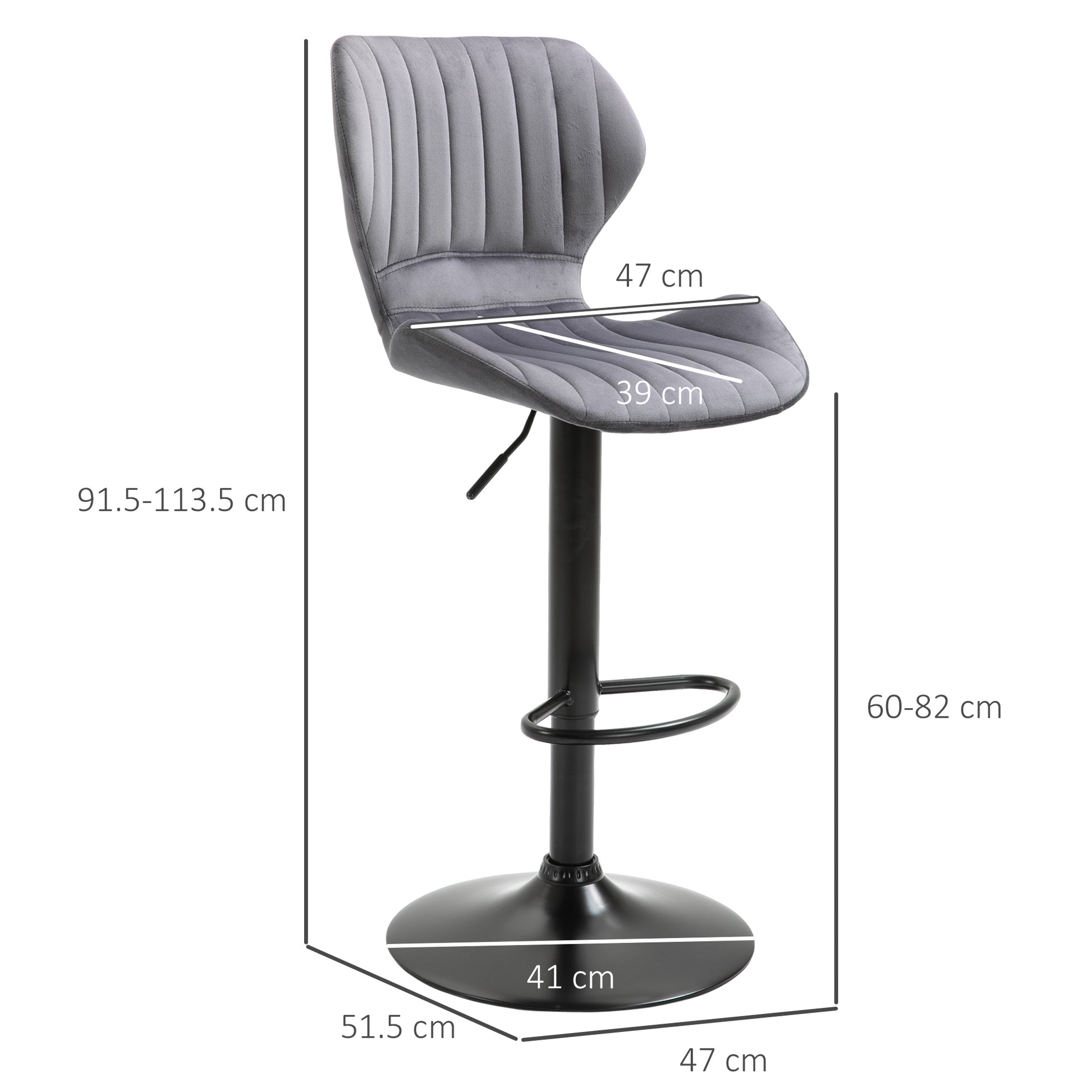 Inject beautiful style into your kitchen counter or bar dining area with these two breakfast bar stools from HOMCOM. Velvet-touch upholstery of the stools serves up high style. Filled with soft sponge to relax the body. Curved back and armless design supports the body whilst giving your body freedom. With the large round base, which is made from metal, this bar stool keeps upright and steady when in use.