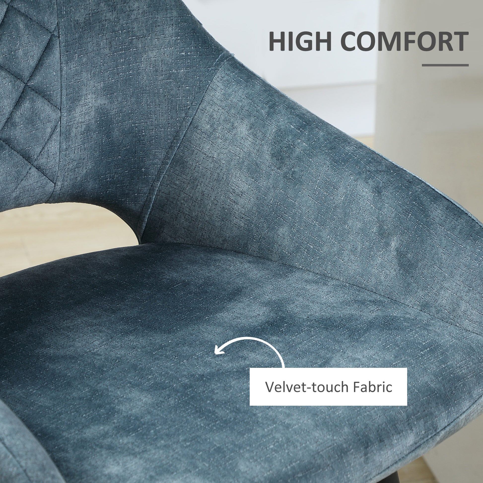 Bar Stools Set of 2, Velvet-Touch Fabric Counter Height Bar Chairs, Kitchen Stools with Steel Legs for Dining Area Blue