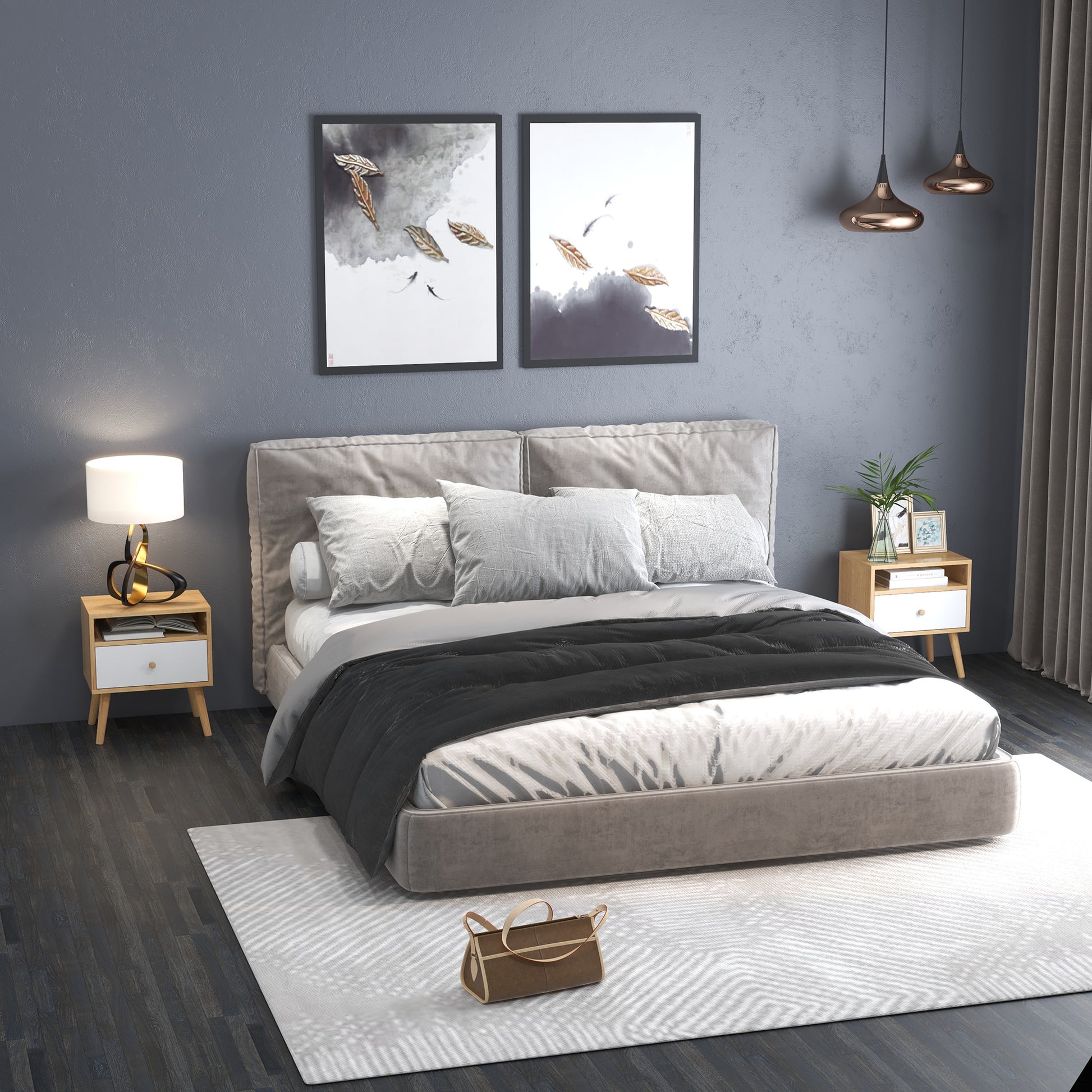 Set Of 2 Bedside Table, Bedside Cabinet with Drawer and Shelf, Modern Nightstand, End Table for Living Room, Bedroom, Natural