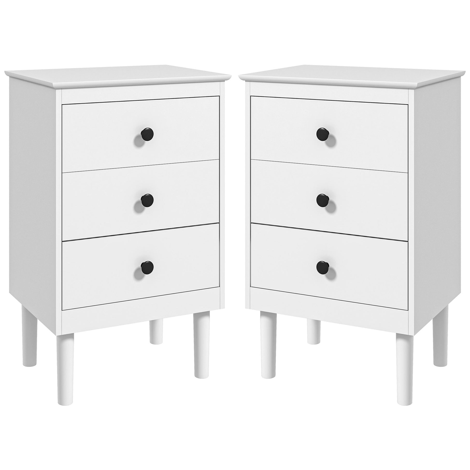 Add a pop of personality to your bedroom with HOMCOM 3 drawer bedside table! These stylish companions are great for keeping all your nighttime essentials at arm's reach. With their sleek design and lots of storage space, you'll never have to compromise on style or functionality again. Crafted with MDF material with painted surface, our white side table suits for reliable daily use. Get ready to transform your bedroom or living room into a chic and organized retreat.