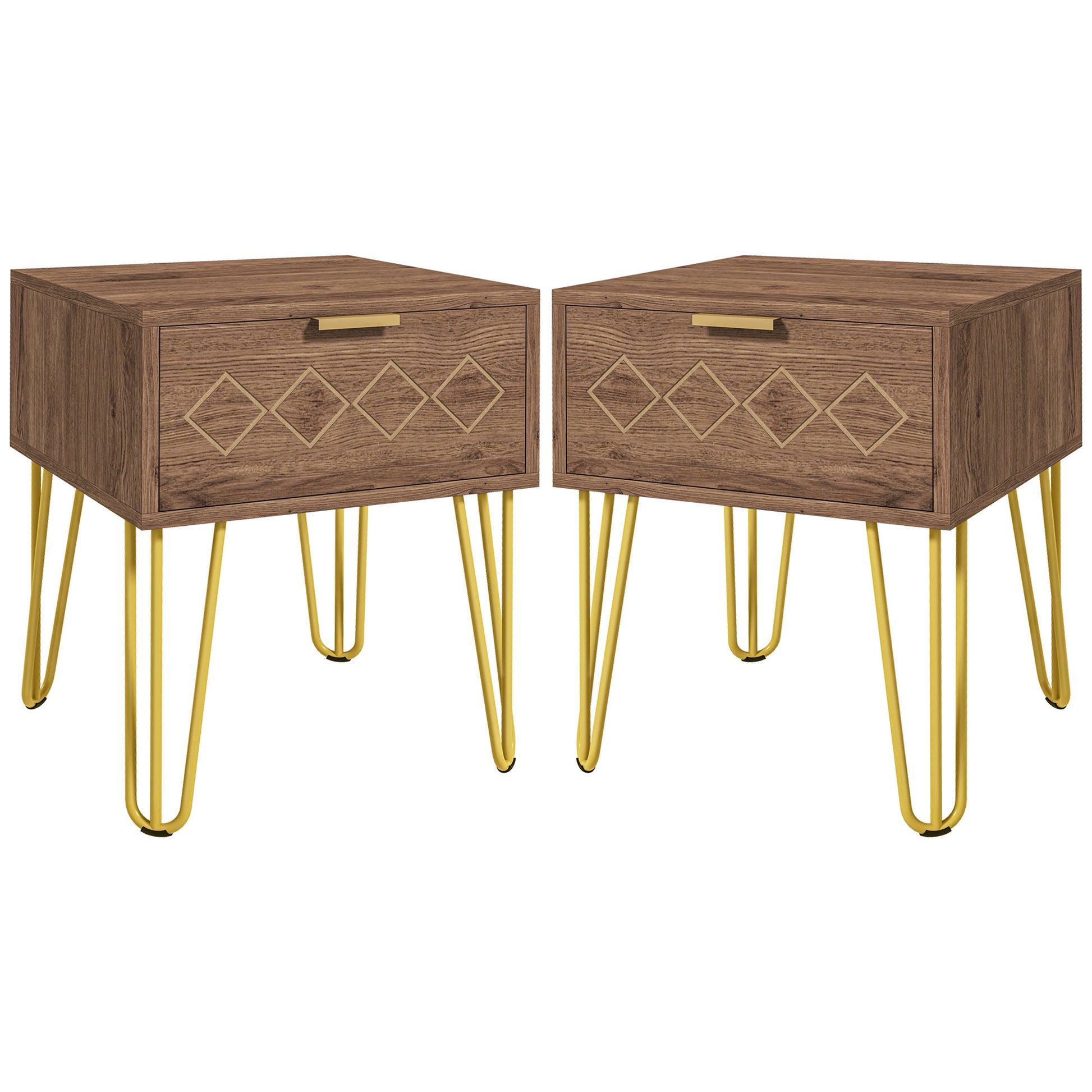 Fusing the classic with the glam, this HOMCOM bedside table. The somewhat faded wood-effect finish is complemented with gold coloured accents to elevate the look. A boxy shape for modern-day styling, it comes with a large pull-out drawer, so you have a good amount of storage space. Four hairpin-shaped metal legs offer lots of support; the gold colour partners with the gold-tone handle and diamond-pattern details on the drawer for a complementary finish.