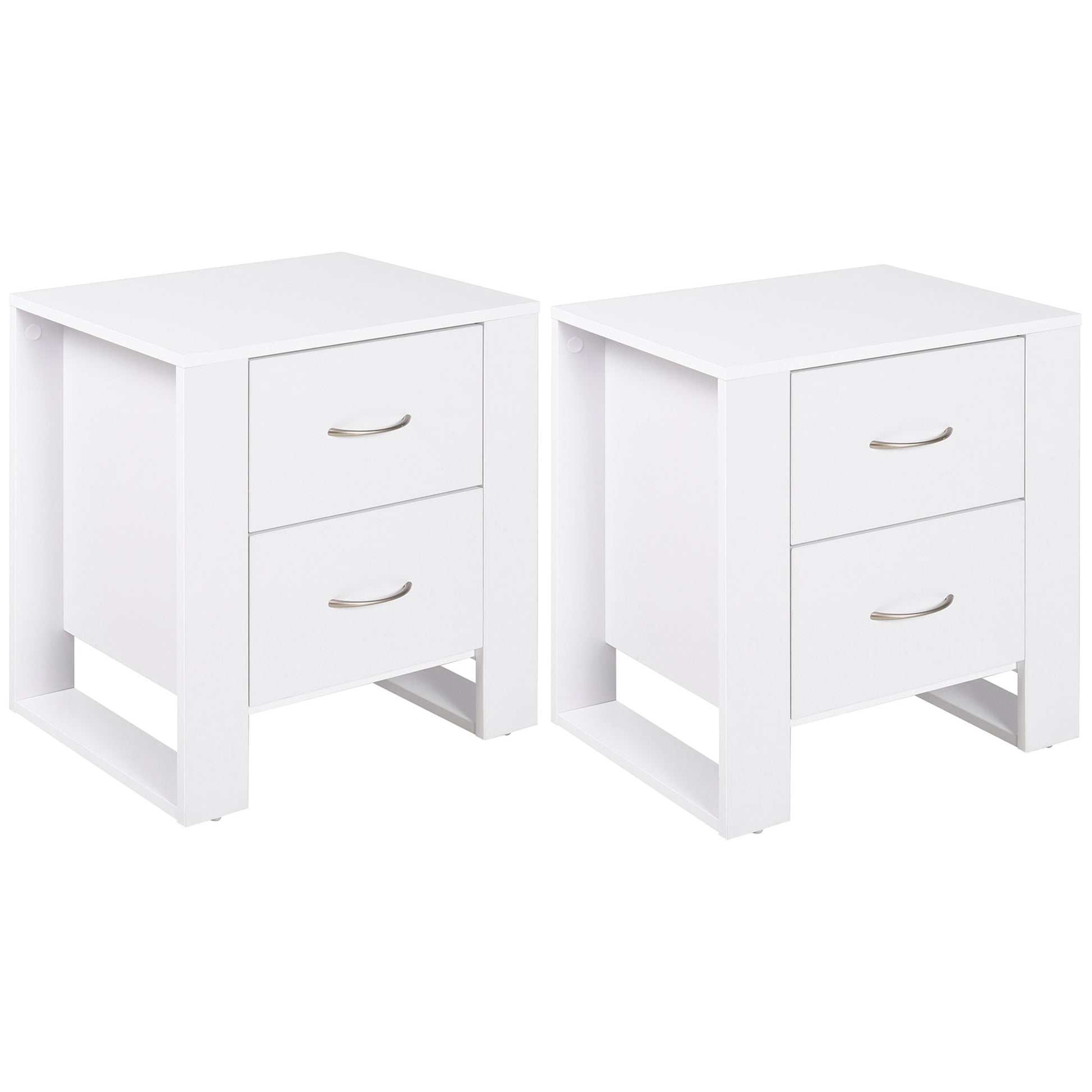 Bedside Table with 2 Drawers, Nightstand with Handles and Elevated Base, Side Table for Bedroom, Living Room, Set of 2, White