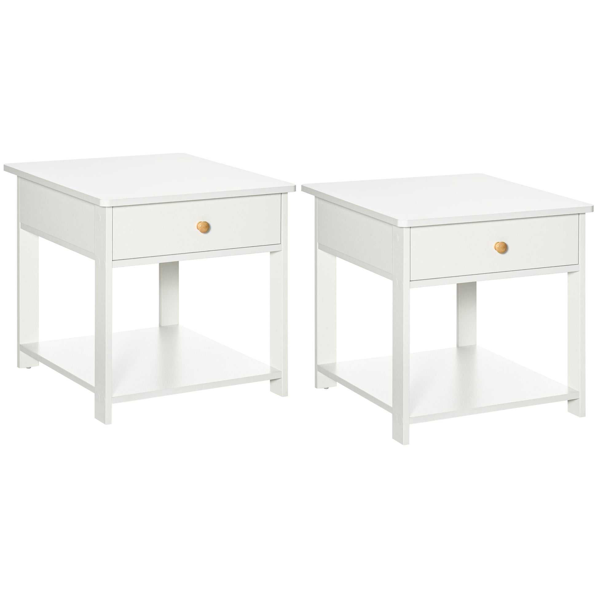 Bedside Table with Drawer and Bottom Shelf, Square Side End Table for Bedroom, Living Room, White, Set of 2