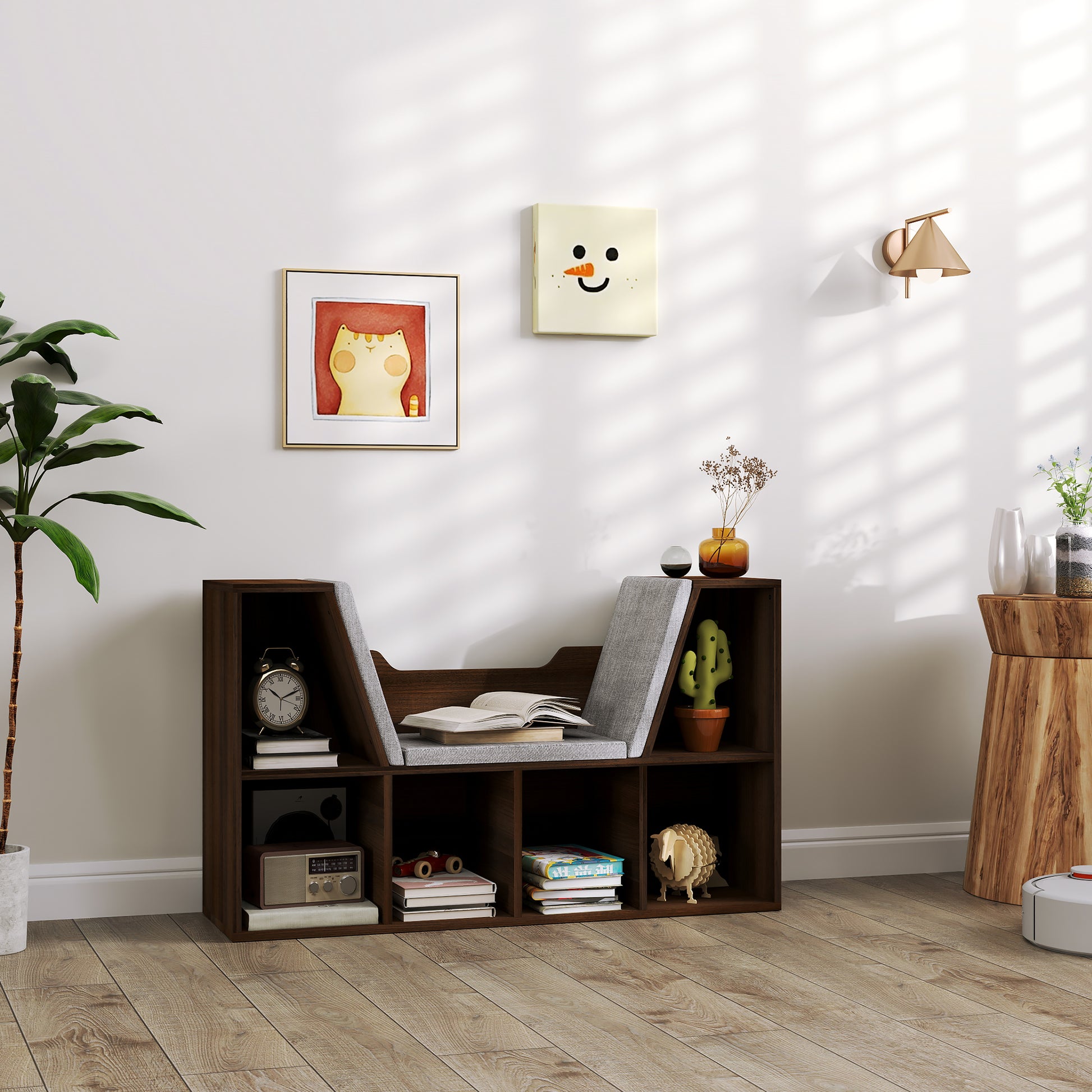 Bookcase Storage Shelf with Cushioned Reading Seat, Cube Bookshelf Organizer for Bedroom Living Room, Chestnut