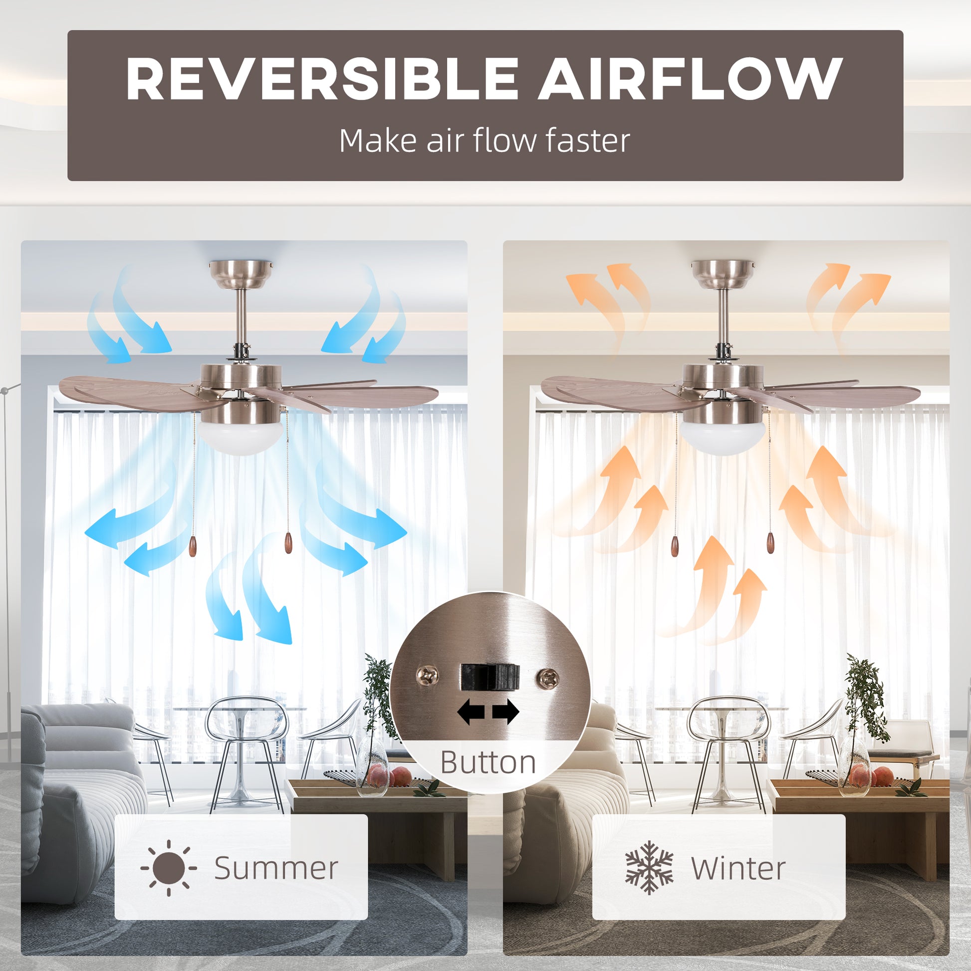 - Pull-chain switch, the light and fan can be controlled separately. Button of the body to change motor direction