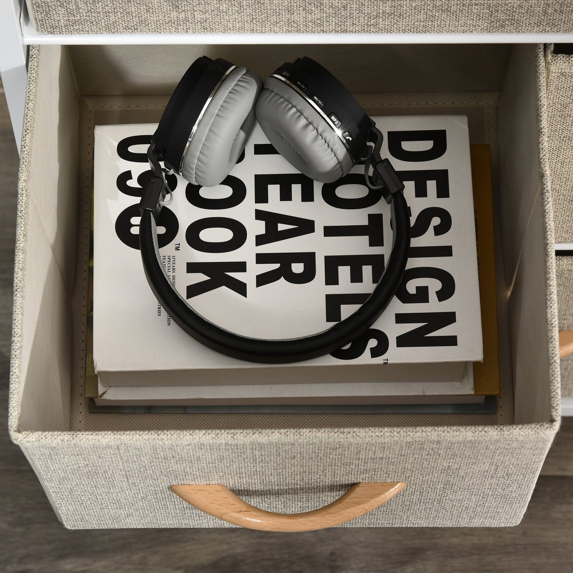 Chest of Drawers Bedroom Unit Storage Cabinet with 4 Fabric Bins for Living Room, Bedroom and Entryway, White