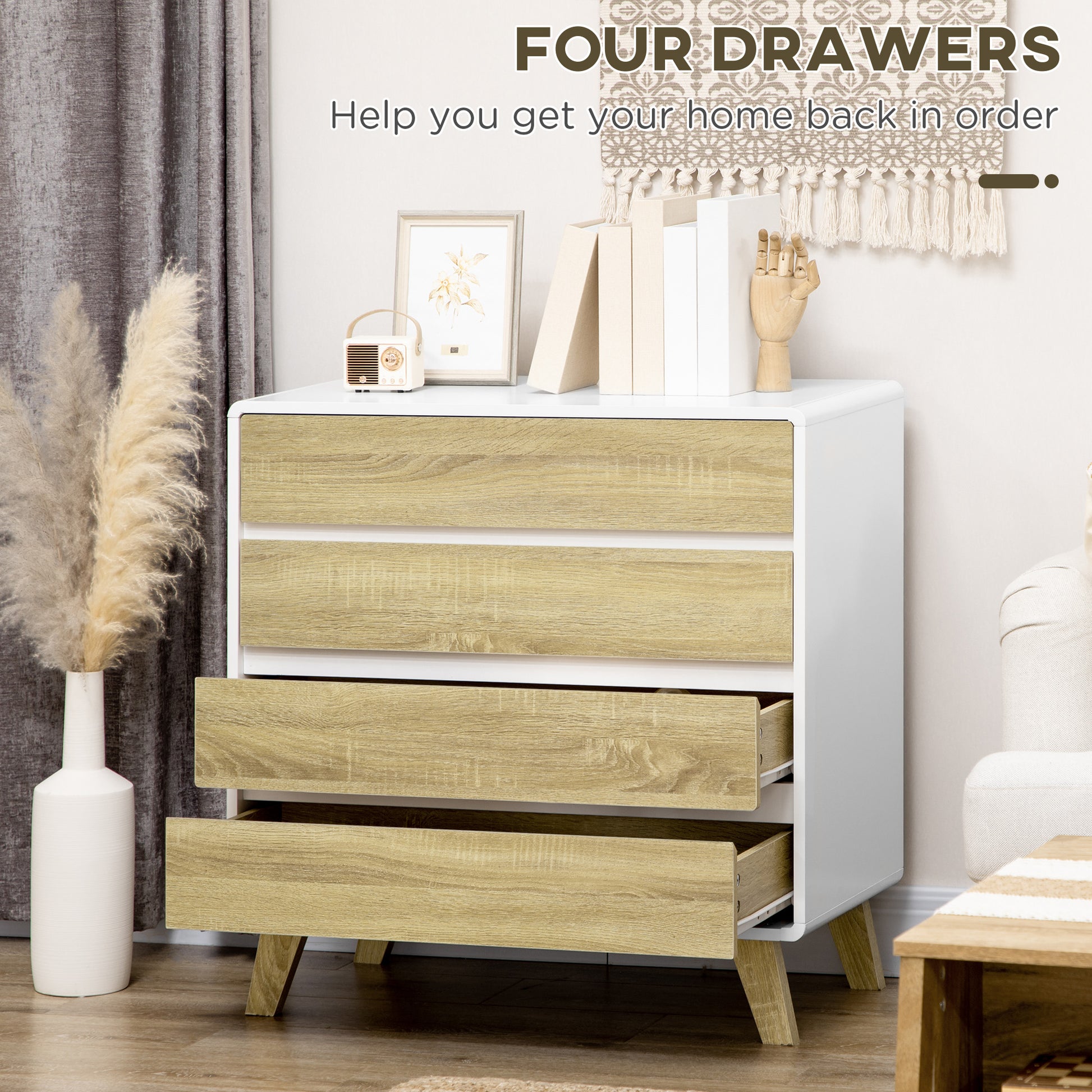 Bring classic style into the home and beyond with these chest of drawers from HOMCOM. Comes with four drawers - plenty of storage for folded clothing and more. The wood effect and white frame design of this drawer unit is classic and simple, making it easy to welcome into your space. A particle board and MDF blend makes this structure stable, with four legs for balance and support.