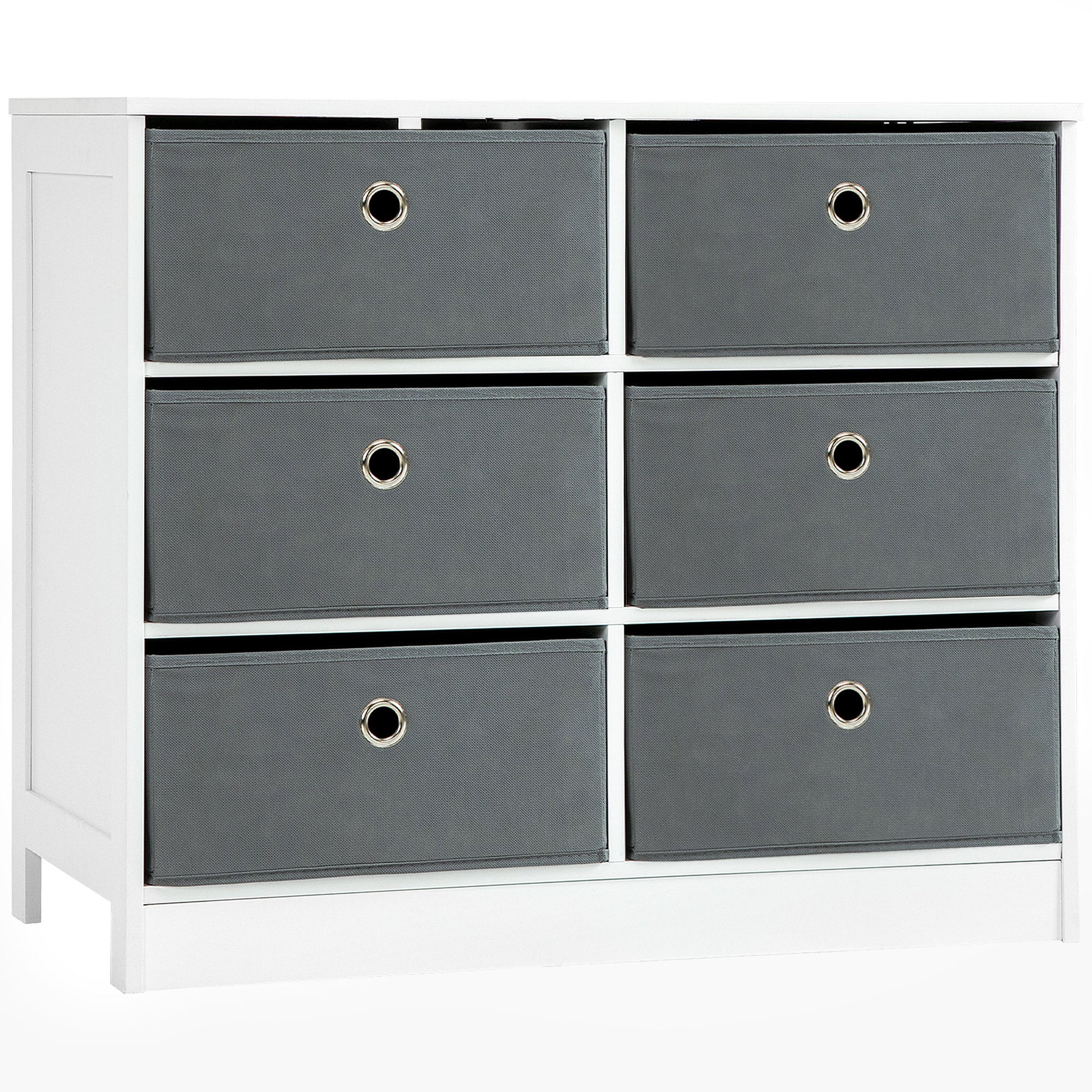 Chests of Drawer, Fabric Dresser Storage Cabinet with 6 Drawers for Bedroom, Living Room and Hallway, White and Grey