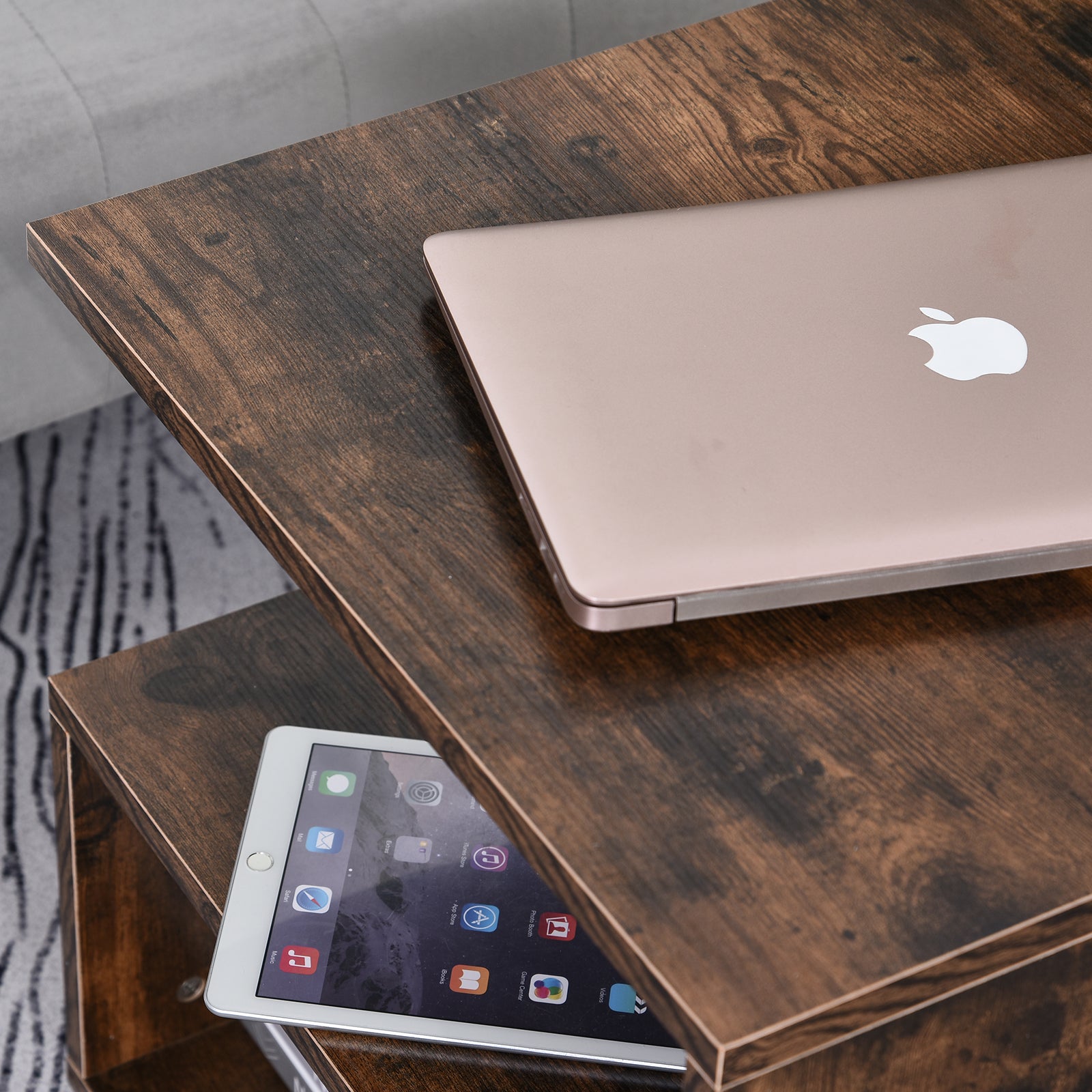 Coffee End Table S shape 2 Tier Storage Shelves Organizer Versatile Home office furniture (Natural)
