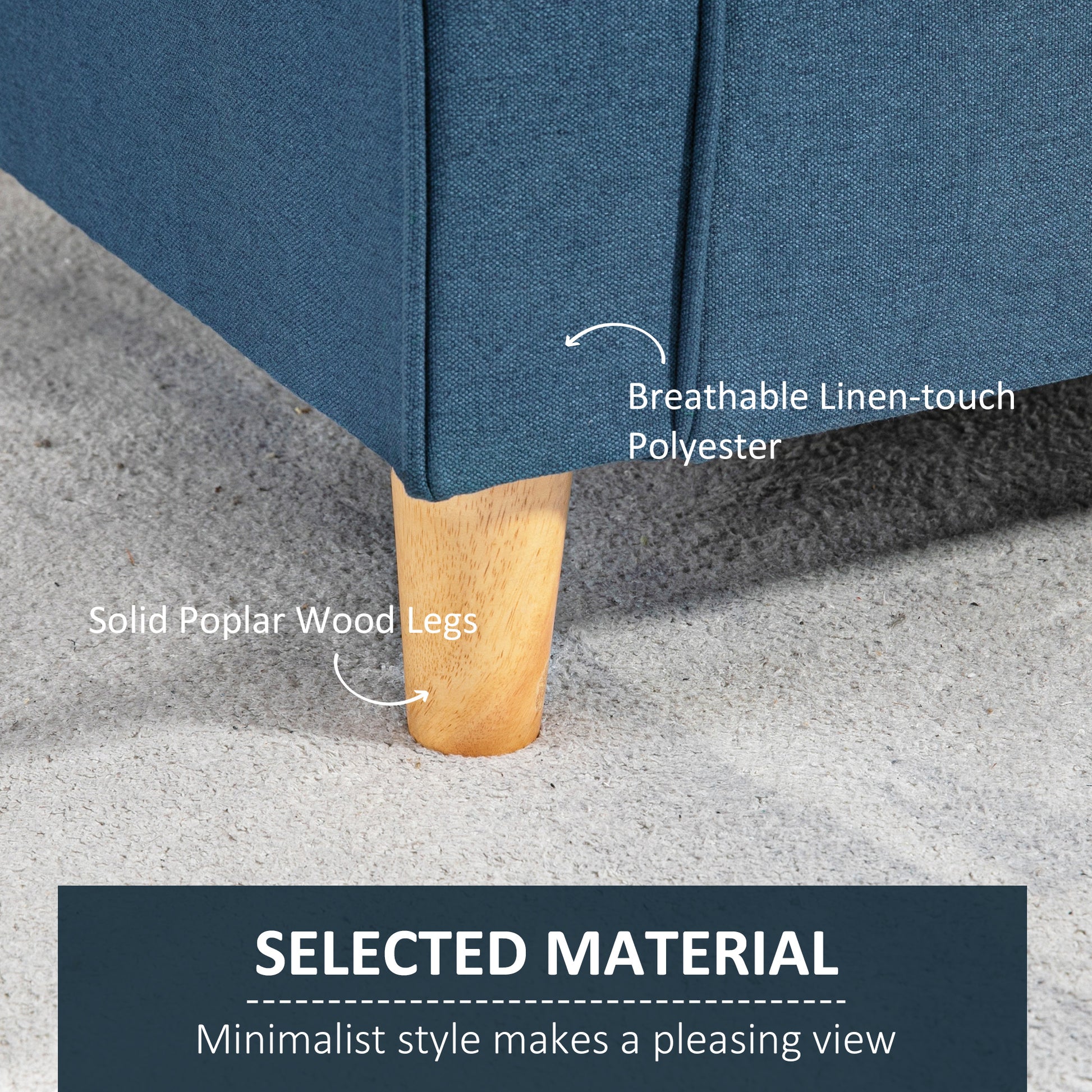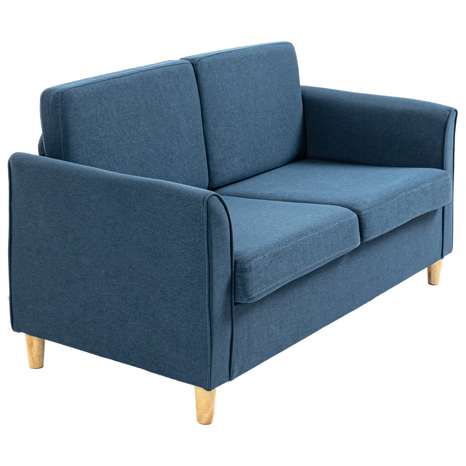 Compact Loveseat Sofa, Modern 2 Seater Sofa for Living Room with Wood Legs and Armrests, Blue