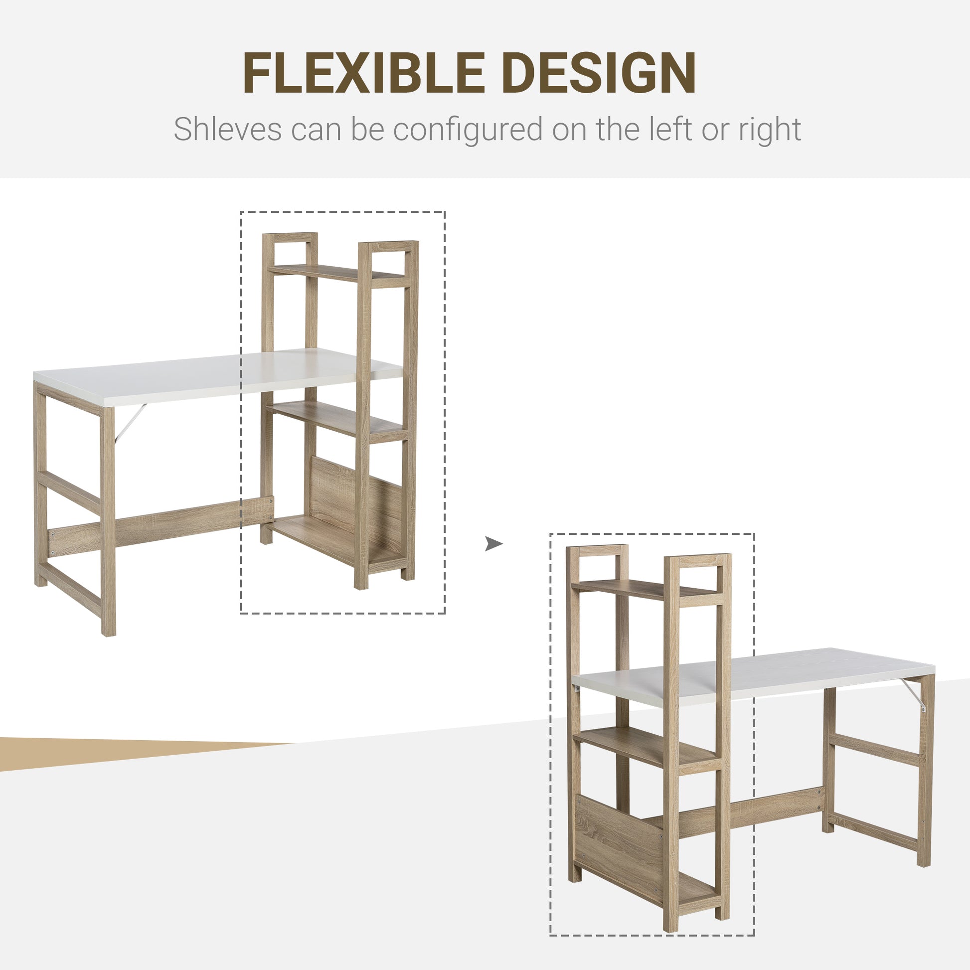 Computer Desk with shelves Office Desk Workstation,Writing Desk Computer PC Laptop Table Workstation, White Wood Grain