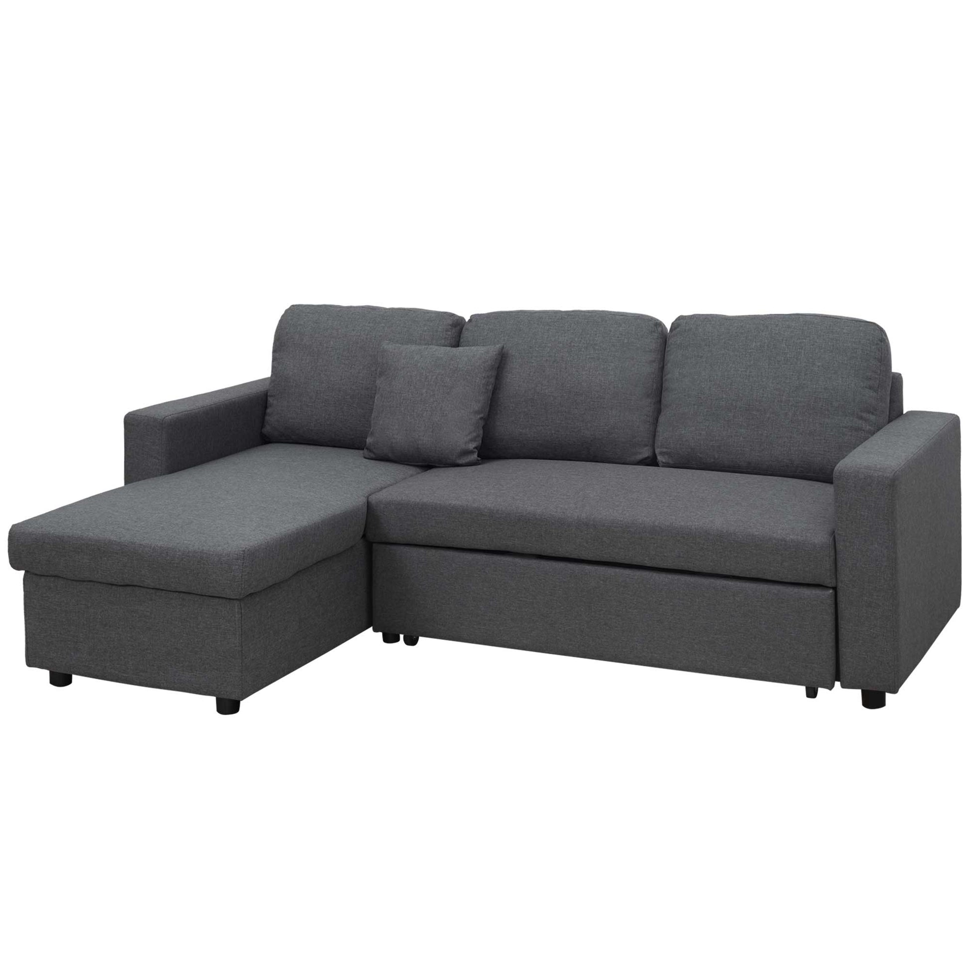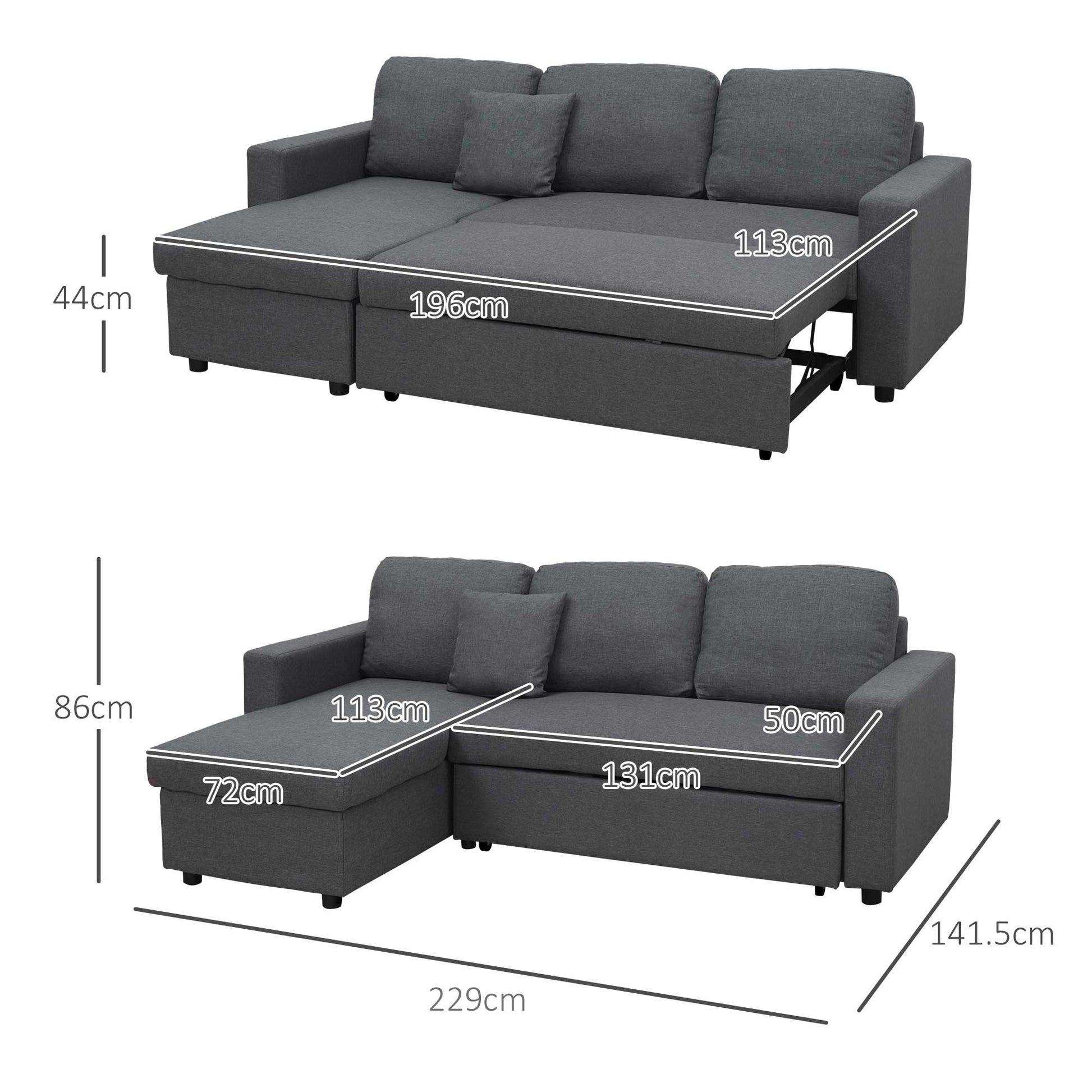 Corner Sofa Bed with Storage, 3 Seater Pull Out Sofa Bed, Convertible L Shape Sofa Couch W/ Reversible Chaise Lounge for Living Room, Dark Grey