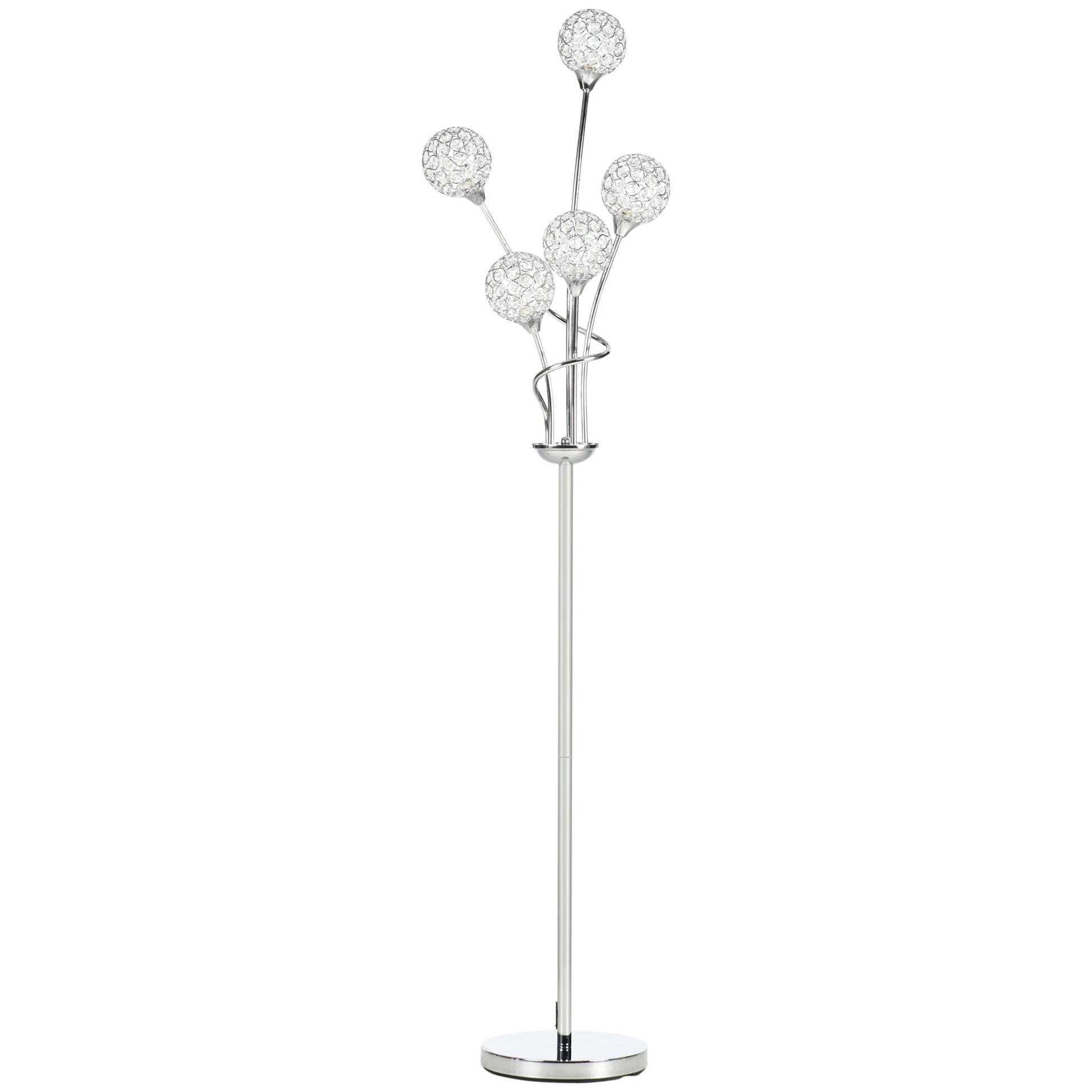 This HOMCOM lamp brings that added sparkle into your home - which you didn't realise you needed. The thin and sleek metal frame is fitted with five ball shades; they're formed of an abundance of crystallite beads - as the light shines through it'll create a glistening atmosphere. Comes with a foot pedal so you can turn this lamp on and off easily. Brighten up your home and living space, instantly.