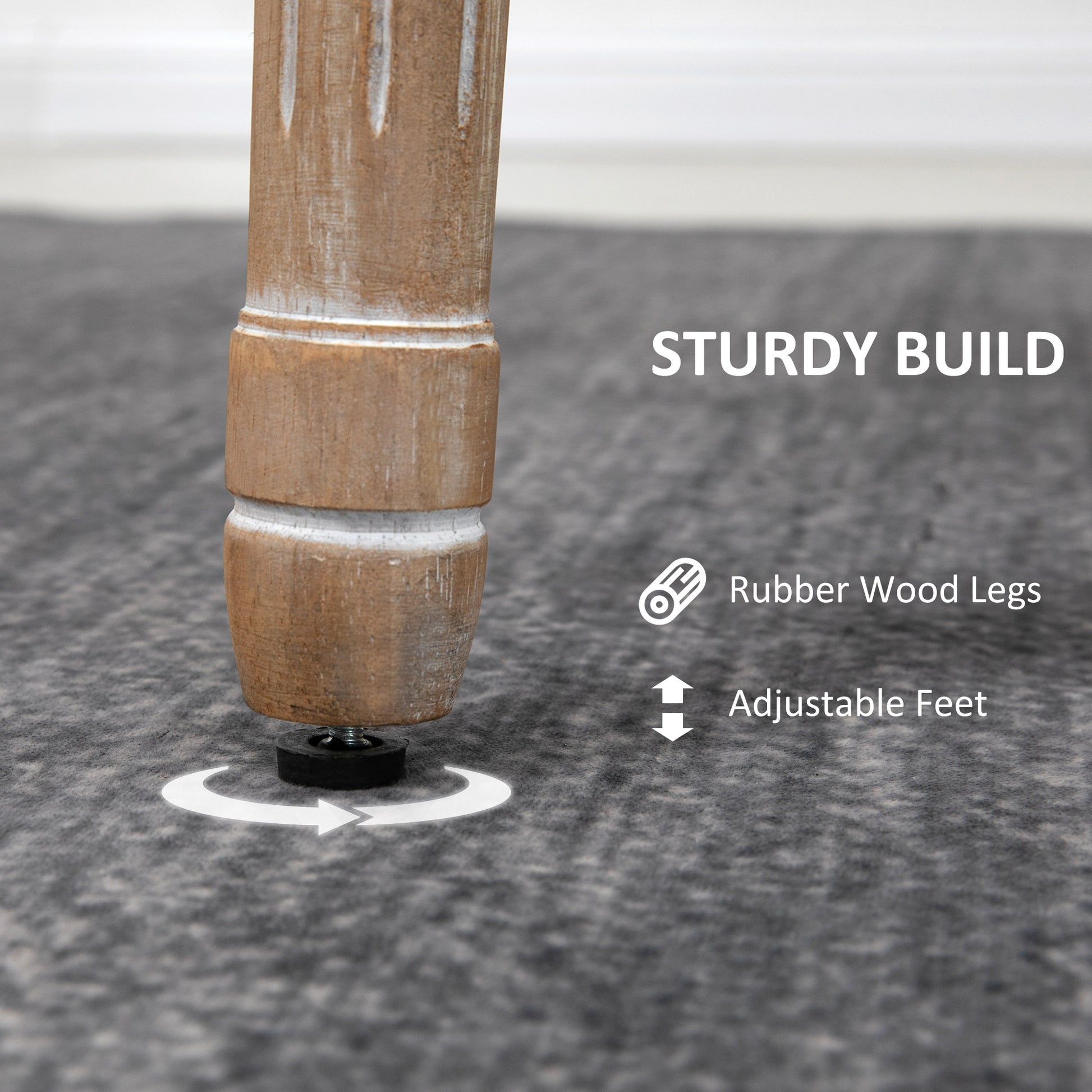 This kitchen chairs set to infuse elegance into your home for gathering with family and friends. The solid rubberwood frame ensures stability to last for years. These dining chairs are full of a thick sponge and covered with linen touch fabric to provide comfort for you. Combined with a round backrest and distressed woodcarving legs in a French style, these dining chairs with a gracefully curved backrest add beauty to your living room, dining room and kitchen.