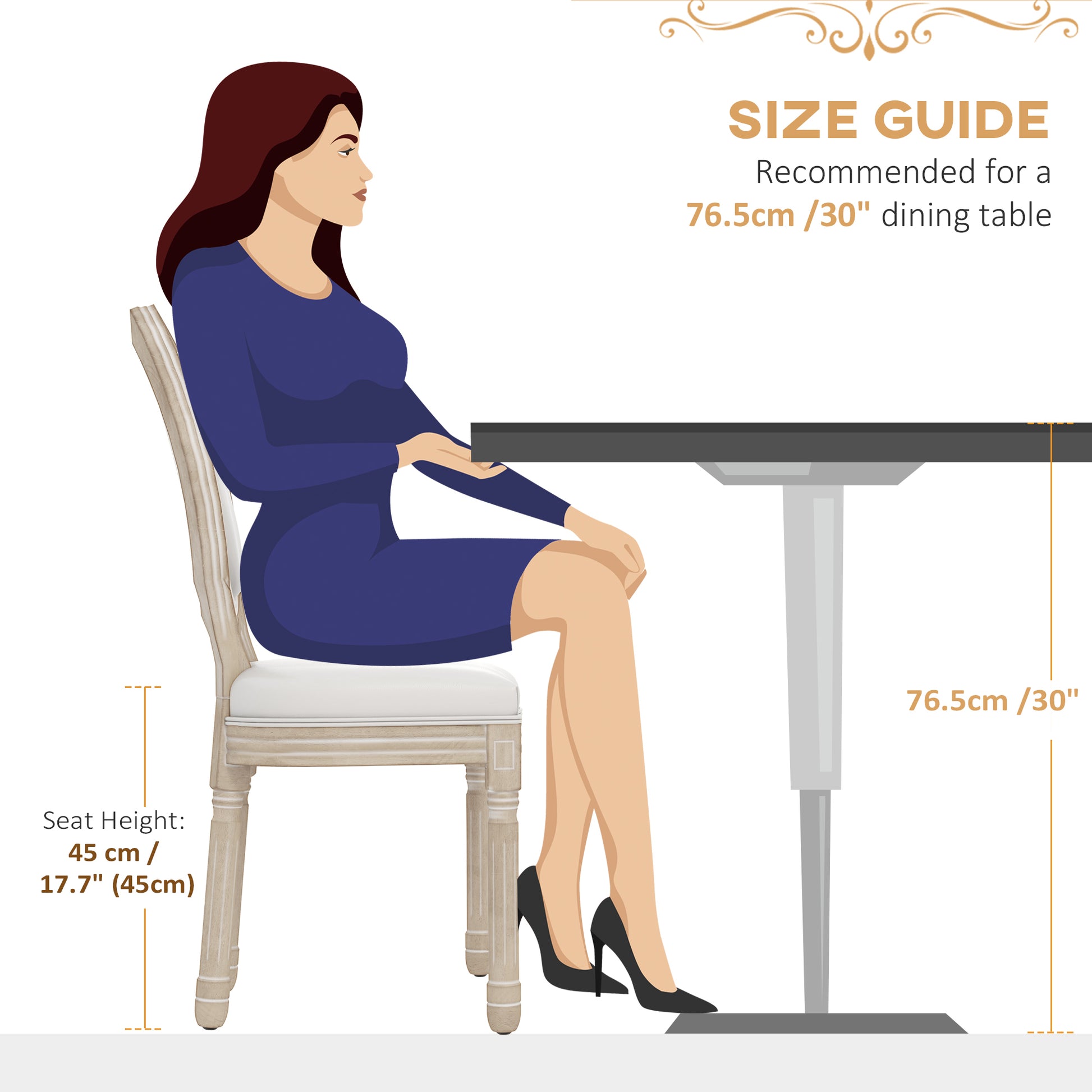 - Seat Size: 48W x 42D x 45Hcm