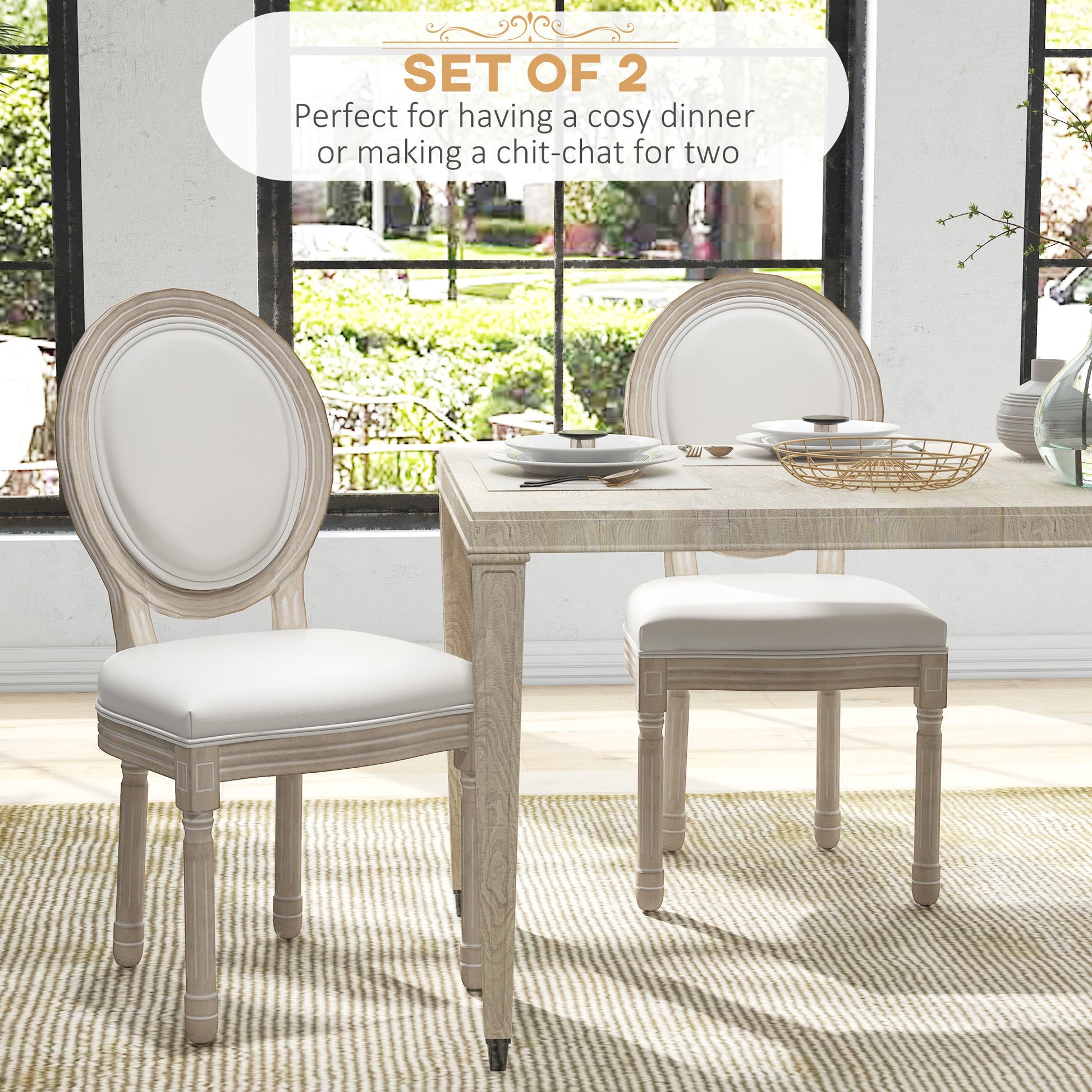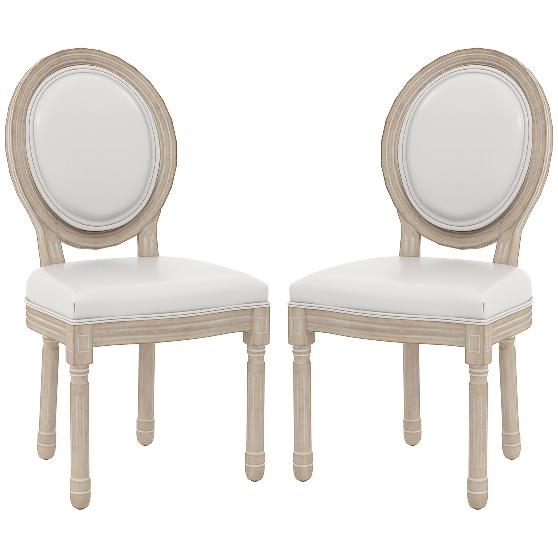 Dining Chairs Set of 2, French Vintage Style Kitchen Chairs with PU Leather Upholstery and Wooden Legs for Dining Room