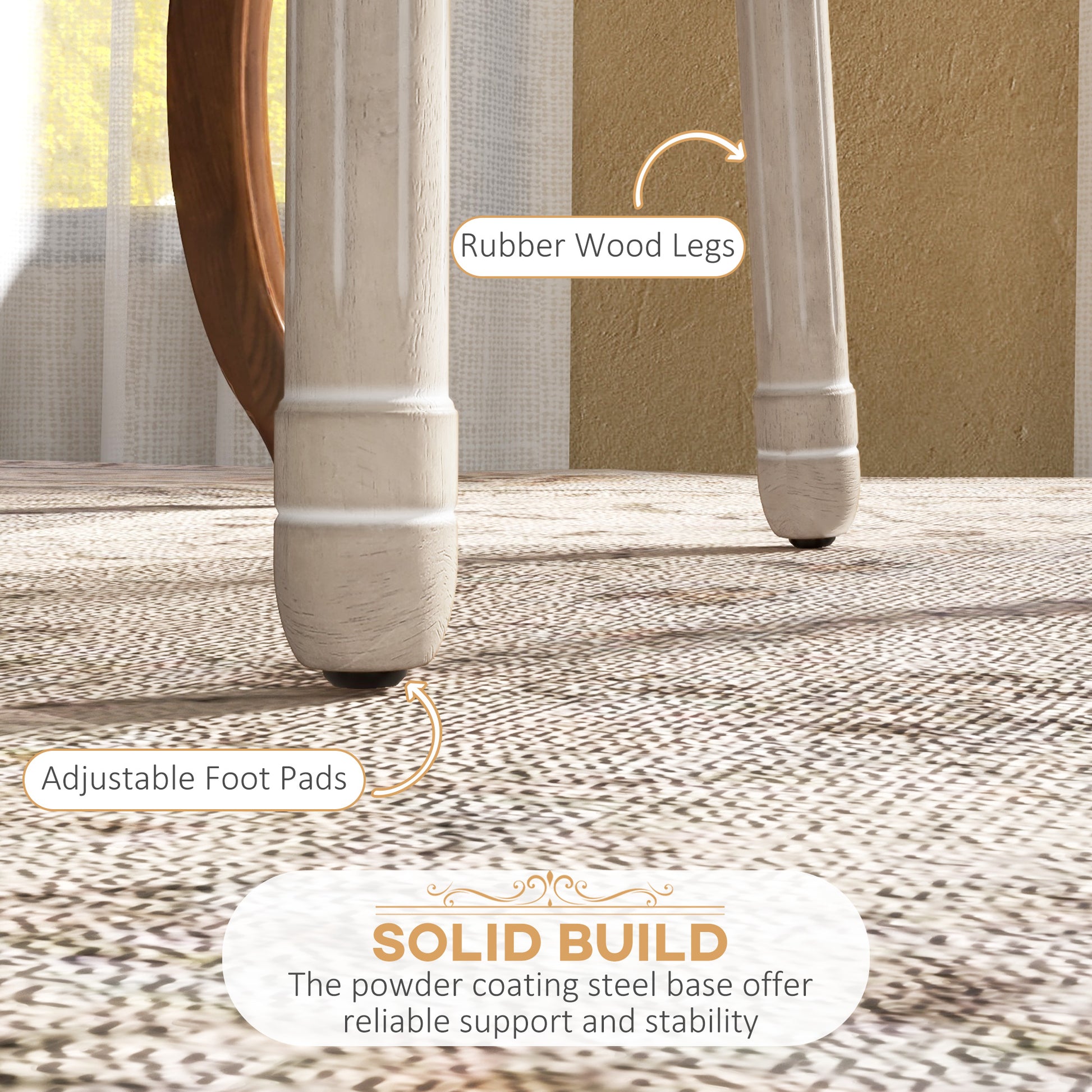 - Materials: PU Leather, Rubber Wood
