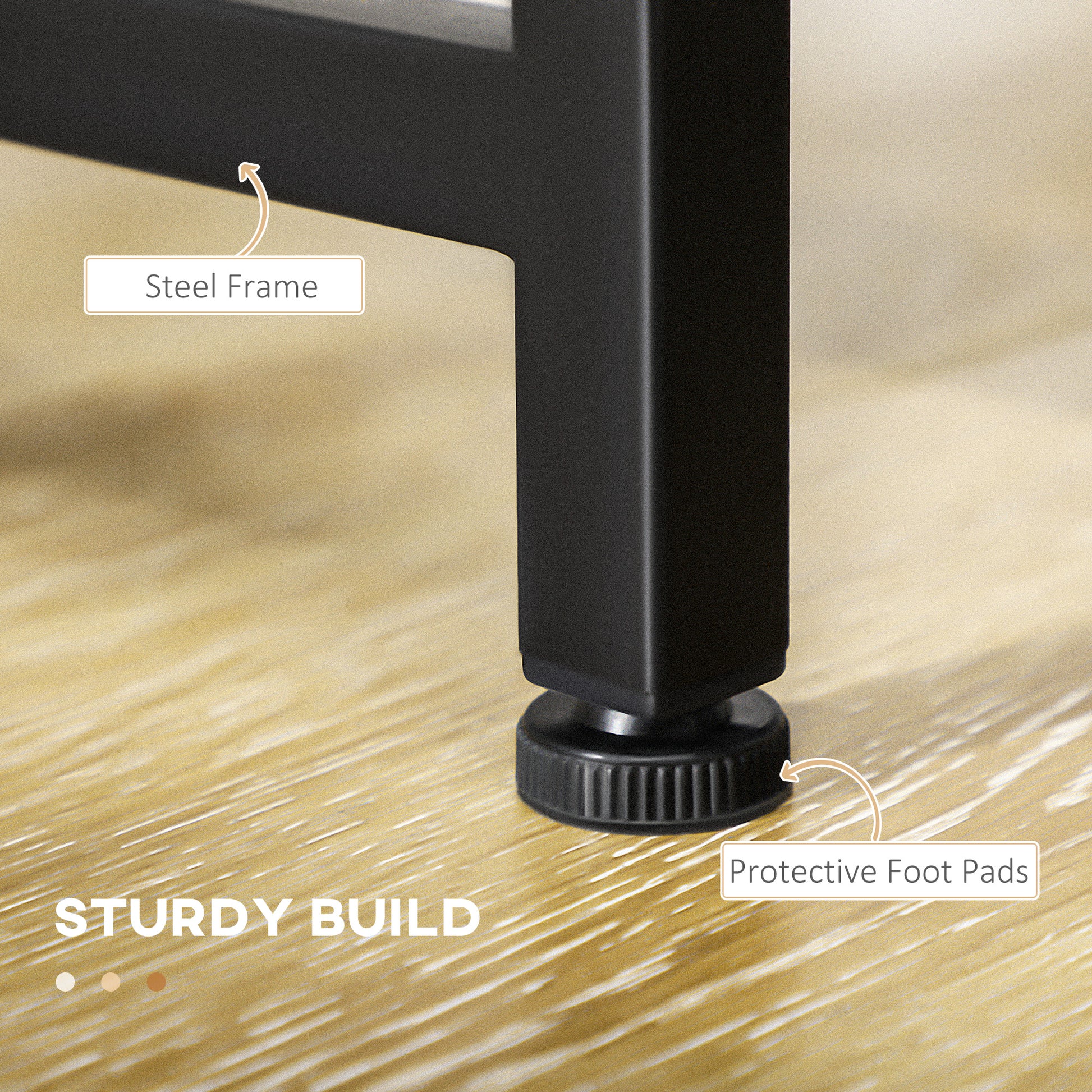 Time spent with company, in style. This HOMCOM dining table set brings together a dining table and two benches: seats four. Steel legs for a strong, supportive structure, with durable particle board table and seat tops with smooth coating to wipe clean easily. Industrial style is cool and striking. When done, the benches tuck into the table to help save space.