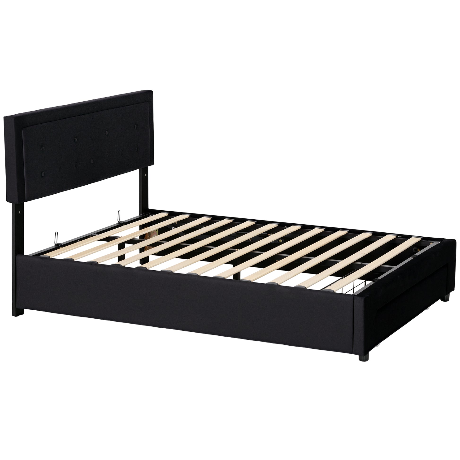 Double Ottoman Bed Frame, with Front Drawer - Cream / Black