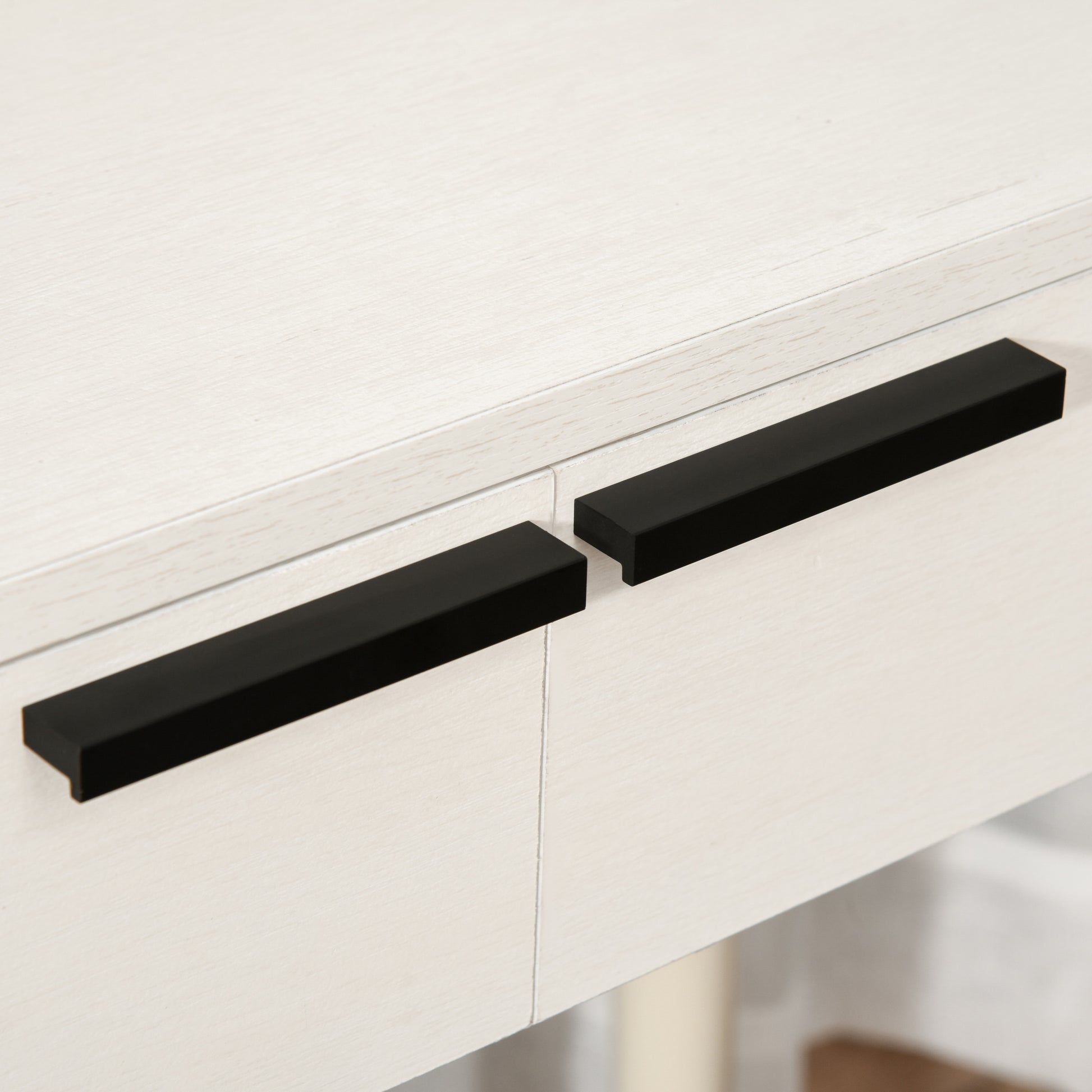 You will find everything you need in this HOMCOM dressing table: elegance, storage and comfort. The set comes with the table and a padded matching stool so you'll be getting ready at the correct height for the mirror. Two sliding drawers for easy storage of cosmetics, brushes and other products. The table top is flat and large for extra holding room, with a large round mirror for you to get ready. The under-table clearance gives plenty of room for your legs so you never feel cramped.