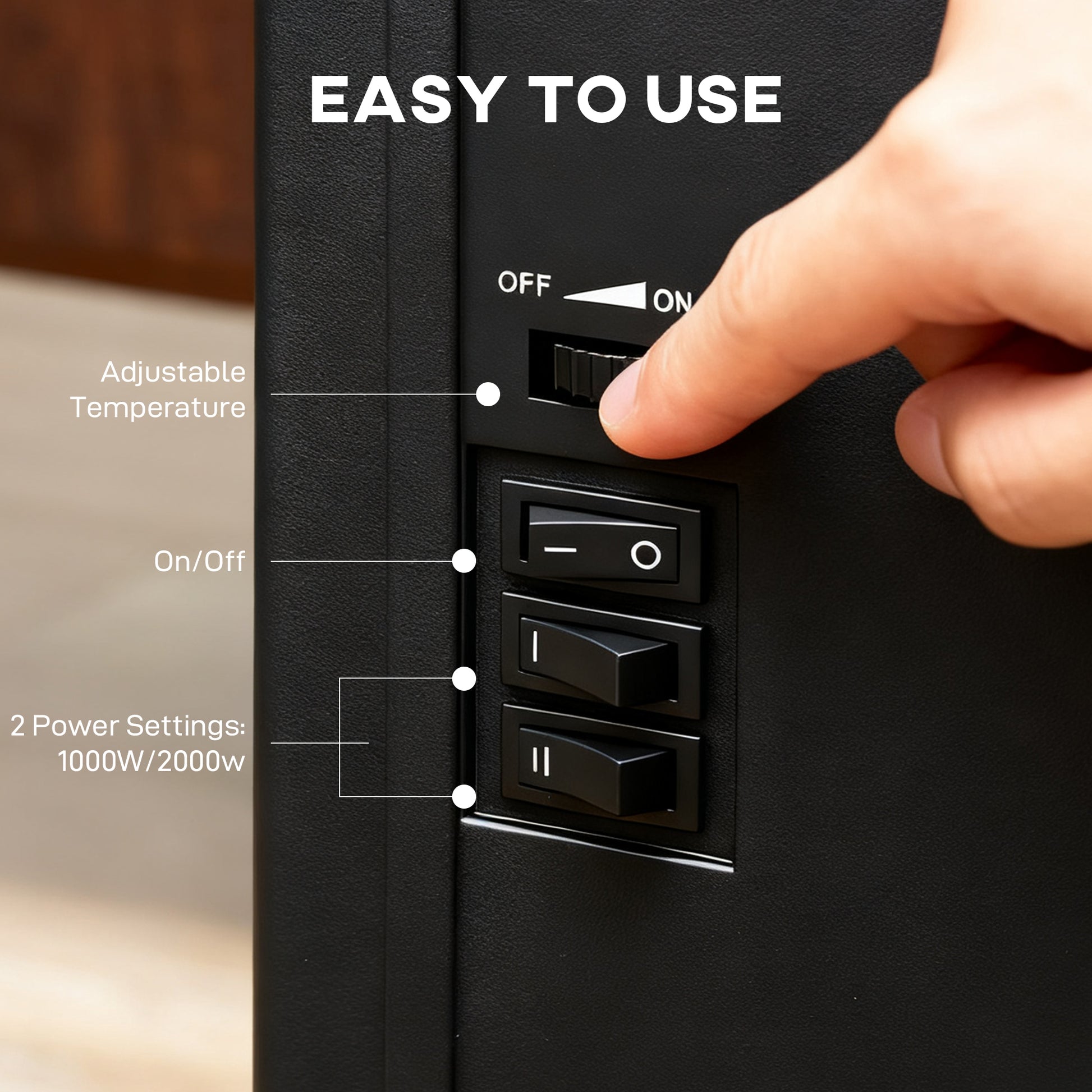 Electric Fireplace Stove Heater with 3D Flame Effect, 2000W/1000W, Freestanding Portable Fireplace with Adjustable Thermostat, 2 Heat Settings for Living Room, Black