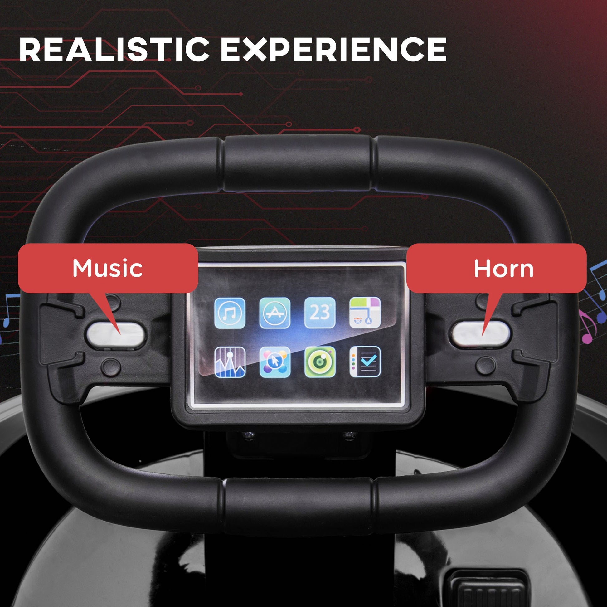 Bringing novelty to ride-on cars, this HOMCOM bumper-style car brings the excitement you'd find at an amusement park. With a 360° spin, kids will ride in any direction, whilst listening to the included music, honking the horn and flashing the LED lights – exciting features that add to the fun. Its maximum speed is 3km/h, so it won't go too fast. The seatbelt ensures maximum security, whilst the handle at the back lets you take control if needed. Transform playtime, filling every day with joy.