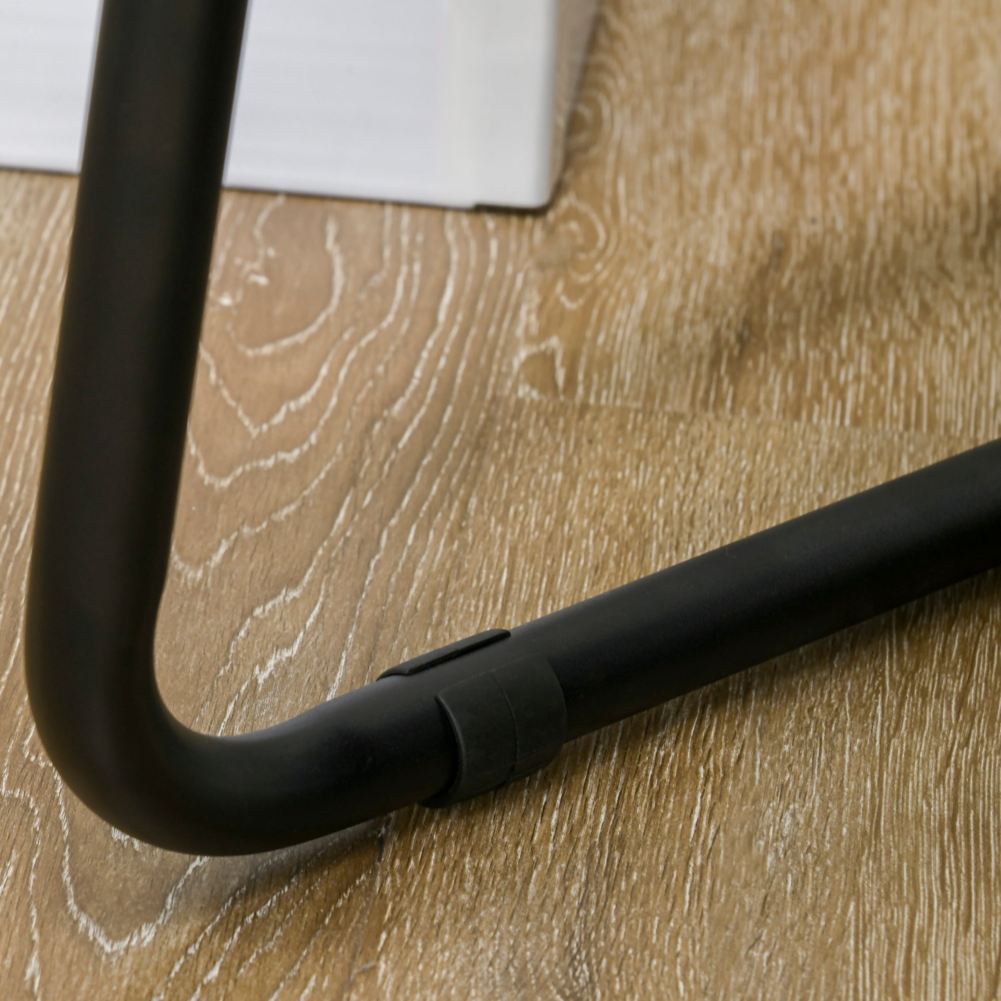 Four-in-one for your home. This HOMCOM sleeper chair bed can be used as a chair or a recliner to relax in, an ottoman to rest your legs and a bed to sleep in. Using powder coated steel for a strong and supportive frame, it comes with a long padded cushion seat to keep you comfortable. The five-position adjustable back is easy to set between a 90°, 120 °, 140°, 160° and 180° angle. Complete with a two-compartment side pocket and pillow.