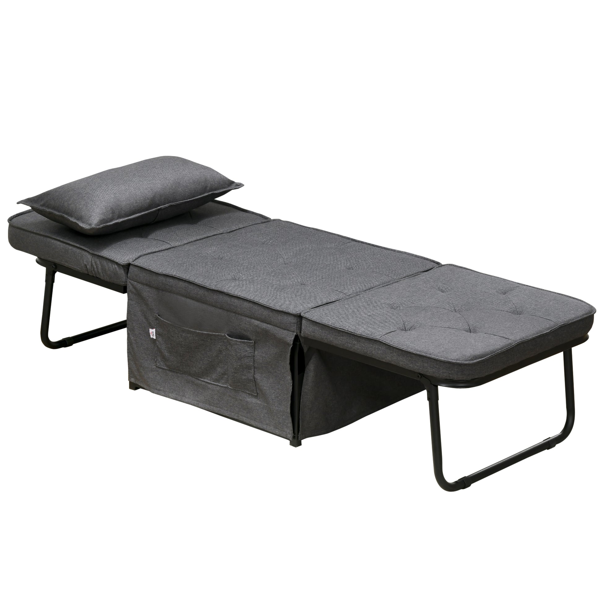 Fabric Sleeper Chair, Folding Chair Bed with Adjustable Backrest, Pillow, Side Pockets for Living Room, Charcoal Grey