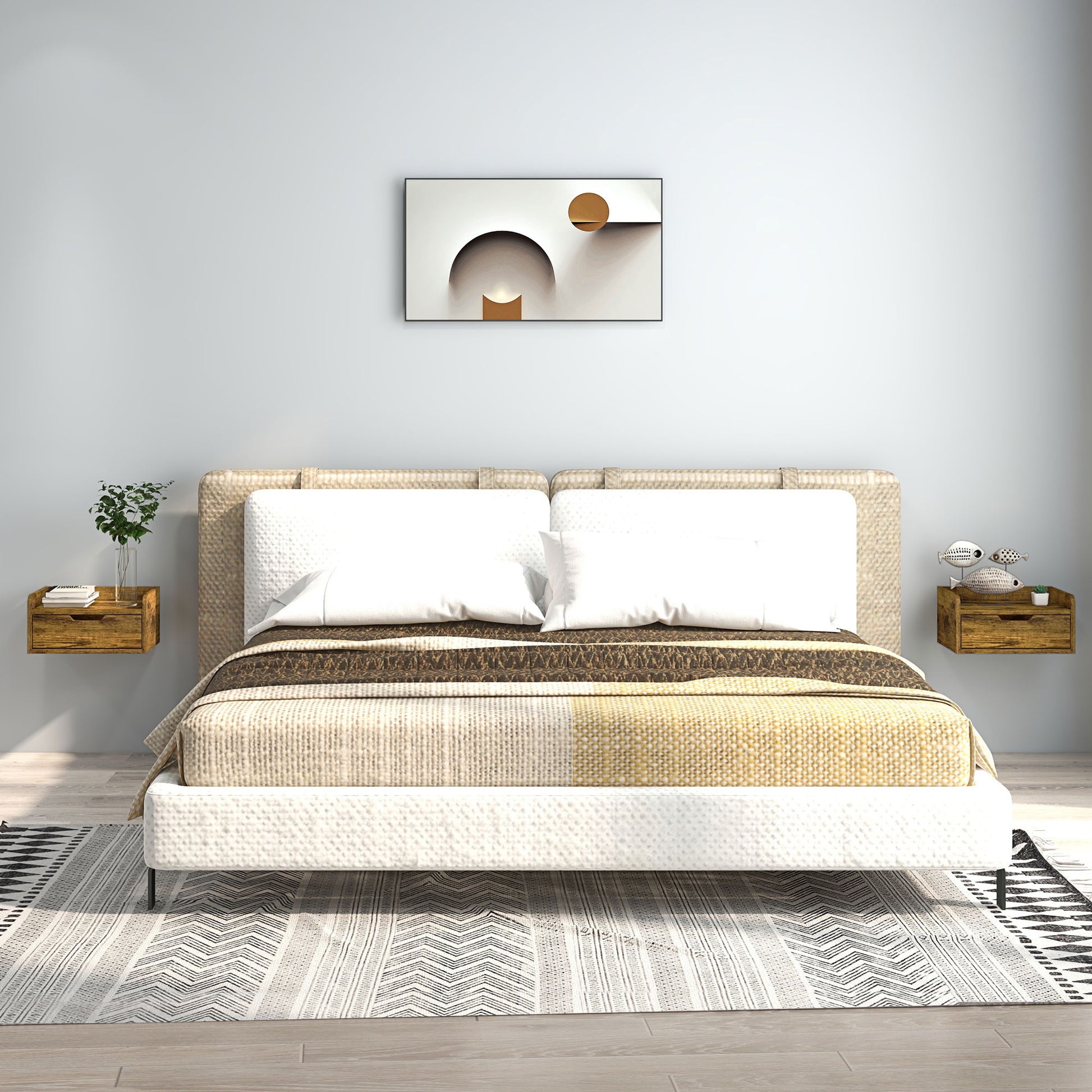 - Floating design: fix each night side table to a position you want