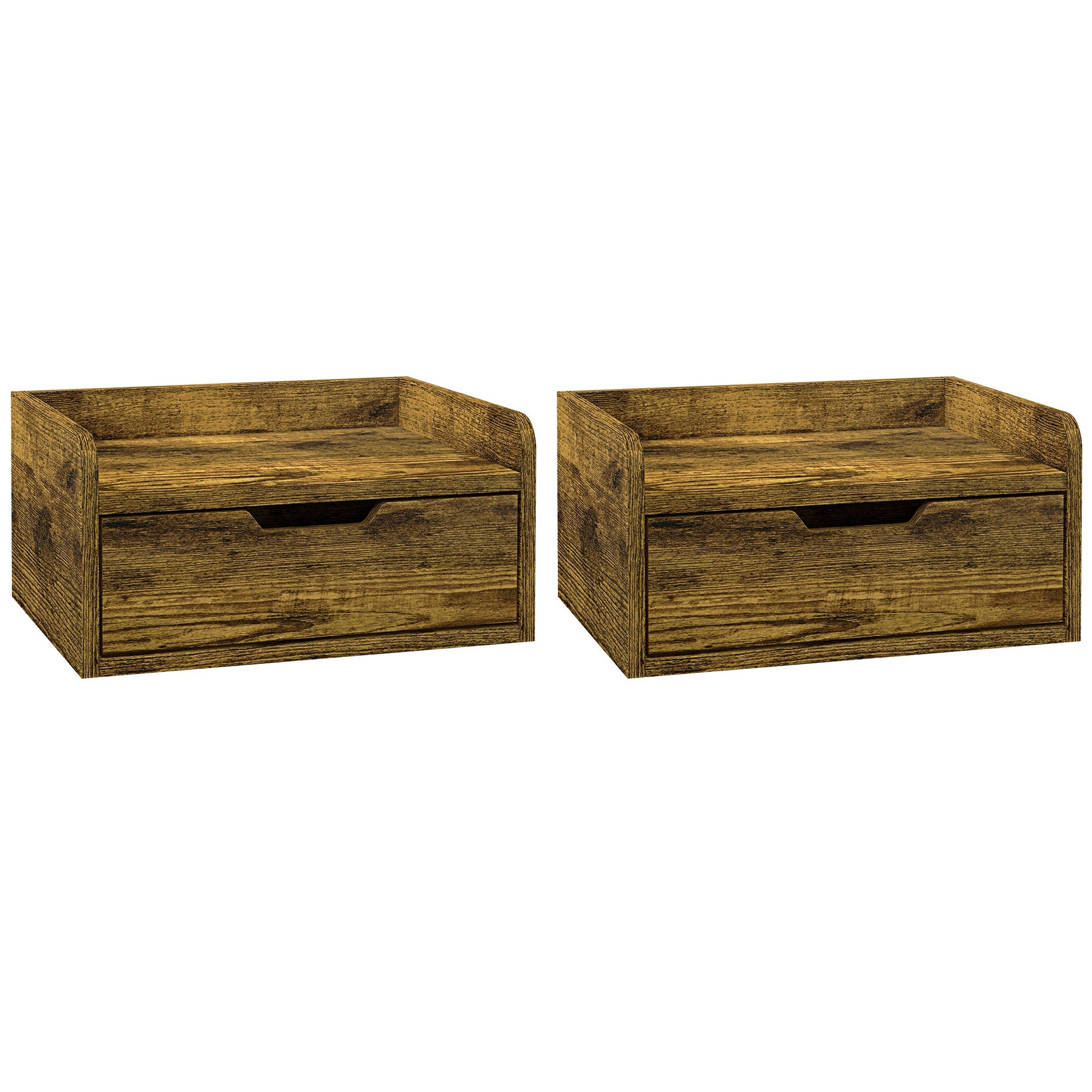 Go for classic furniture styling for bedtimes. Go for these two HOMCOM bedside tables. The firm particle board structures come in a wood-effect look - leave natural or customise how you want. Both tables are floating - individually fix to a position of your choice. With a pull-out drawer and flat top shelf, there is plenty of storage room for bedtime essentials, a clock and lamp. Package comes as a set of two.