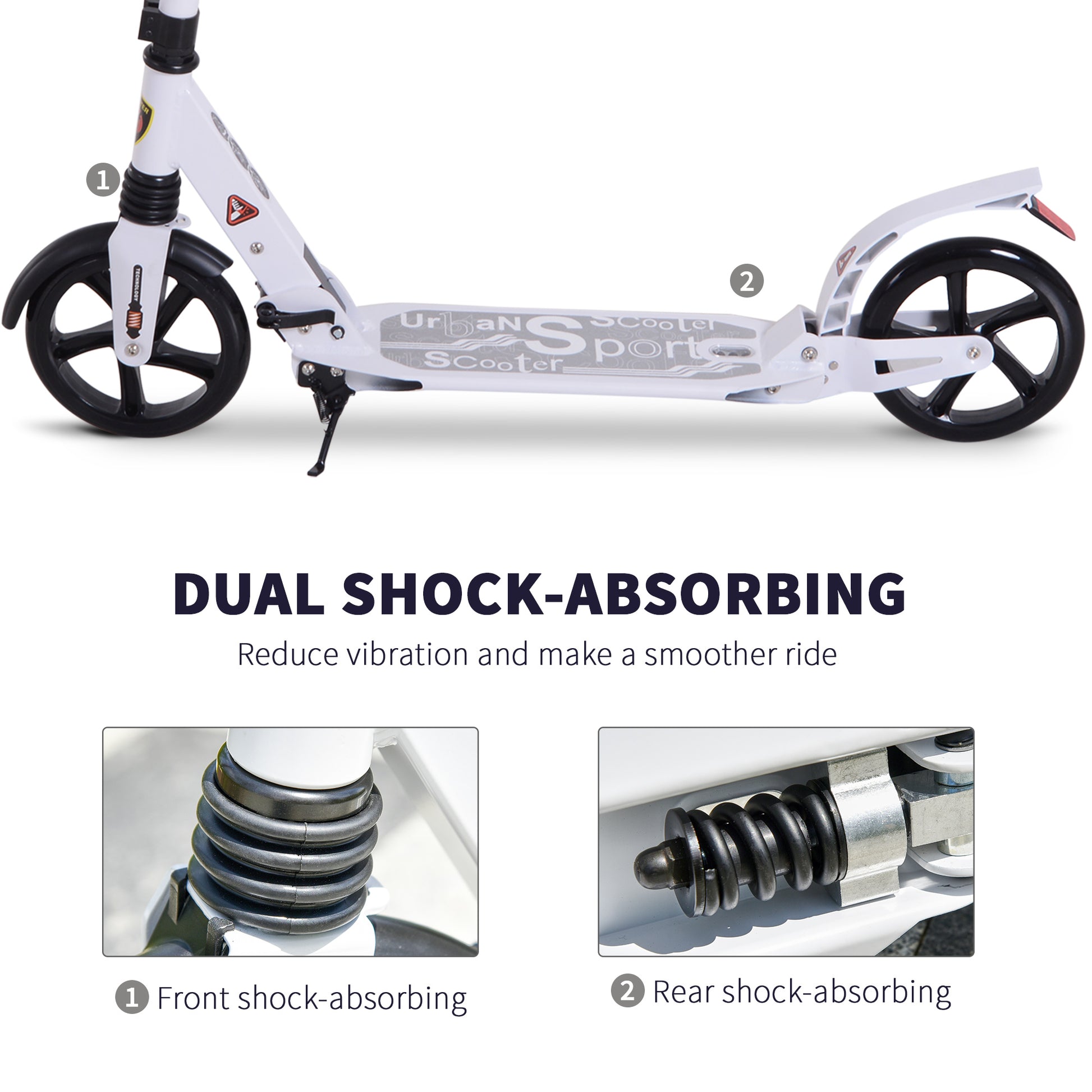 Folding Kick Scooter 2 Big Wheels Teens Adult 14+ Adjustable Ride On White / Black