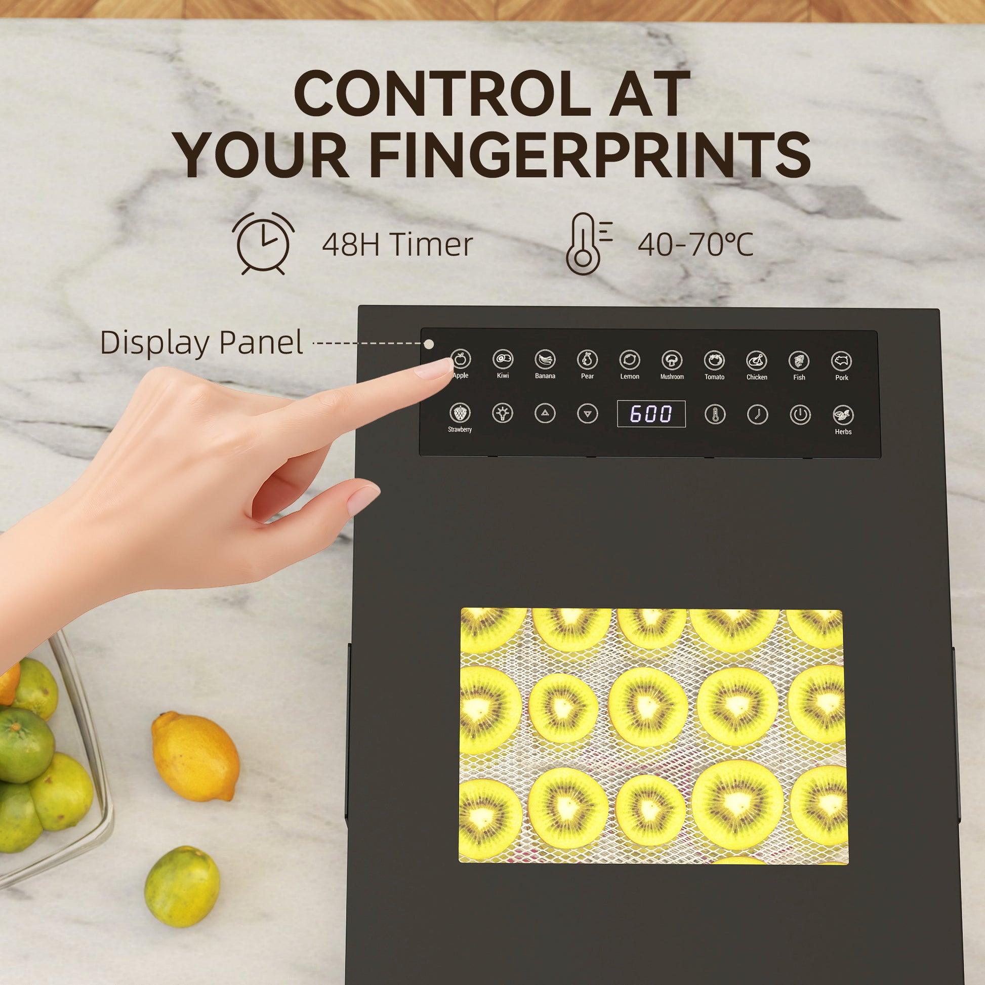 Food Dehydrator with 12 Stainless Steel Tray, 850W Food Dryer Machine with LED Touch Panel, 40-70℃ Adjustable Temperature, 48H Timer for Drying Fruit, Meat, Vegetable, Jerky, Pet Treat, Black
