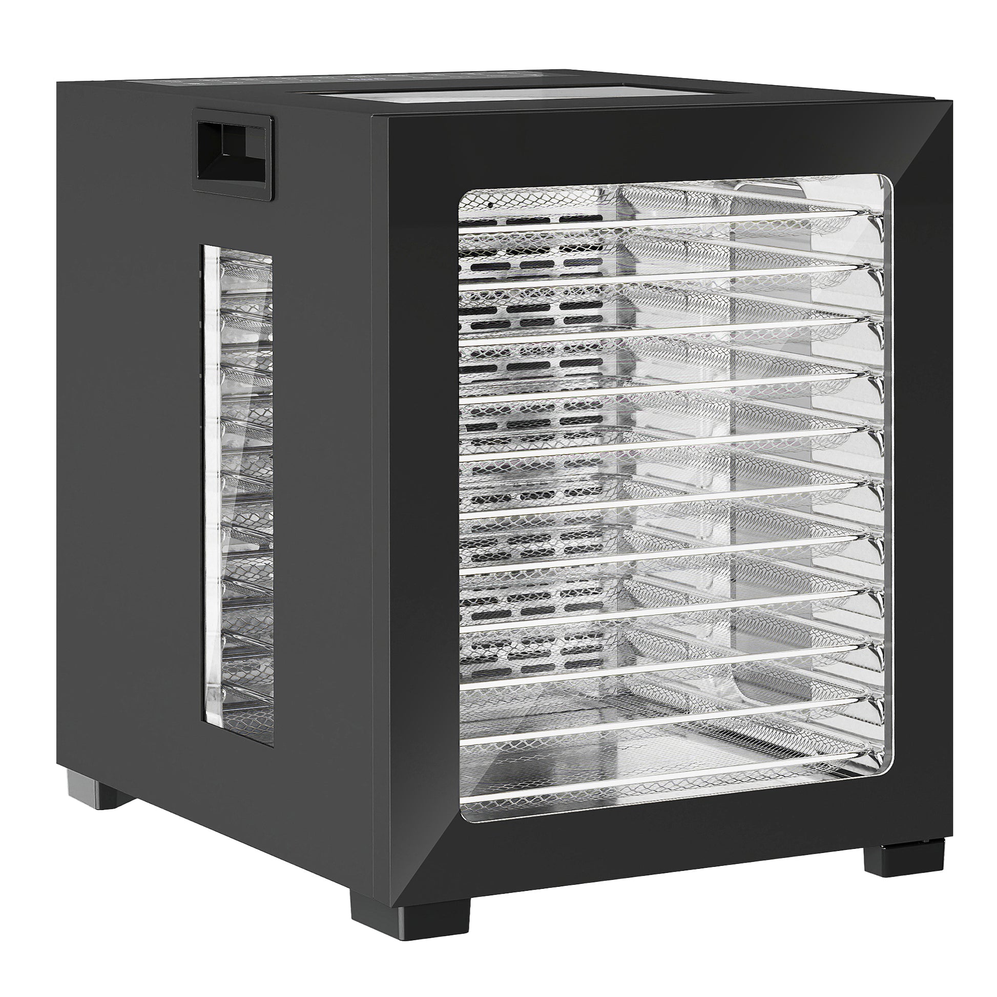 Discover the joy of homemade snacks with the HOMCOM Food Dehydrator. Featuring 12 stainless steel trays and a powerful rear air outlet, it ensures even and efficient drying. Peek through the clear view window to monitor your fruits, jerky, or herbs without interrupting the process. With easy touch controls, this dehydrator makes healthy snacking straightforward and fun!