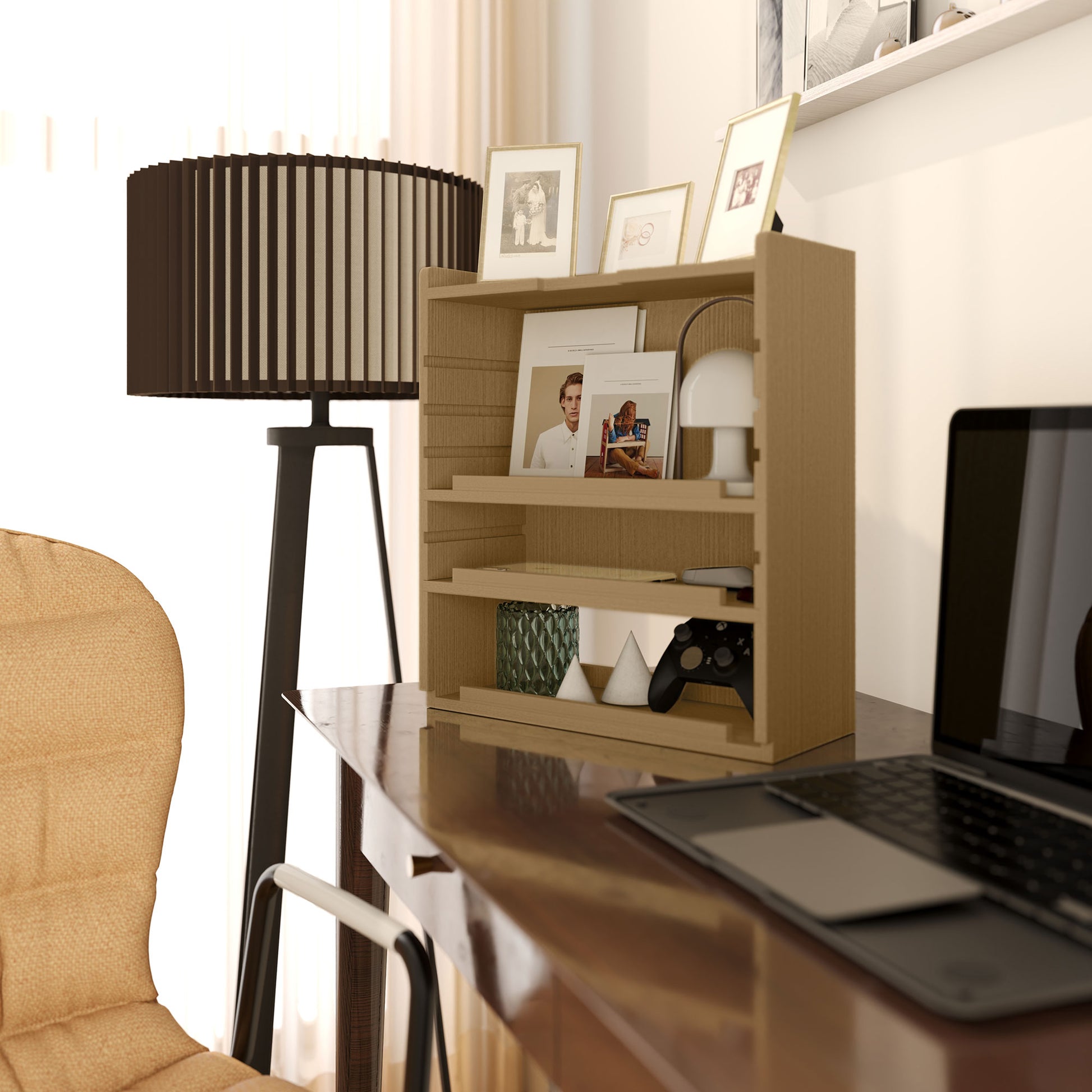 Four-Tier Desktop Organiser Storage Rack - Oak Tone