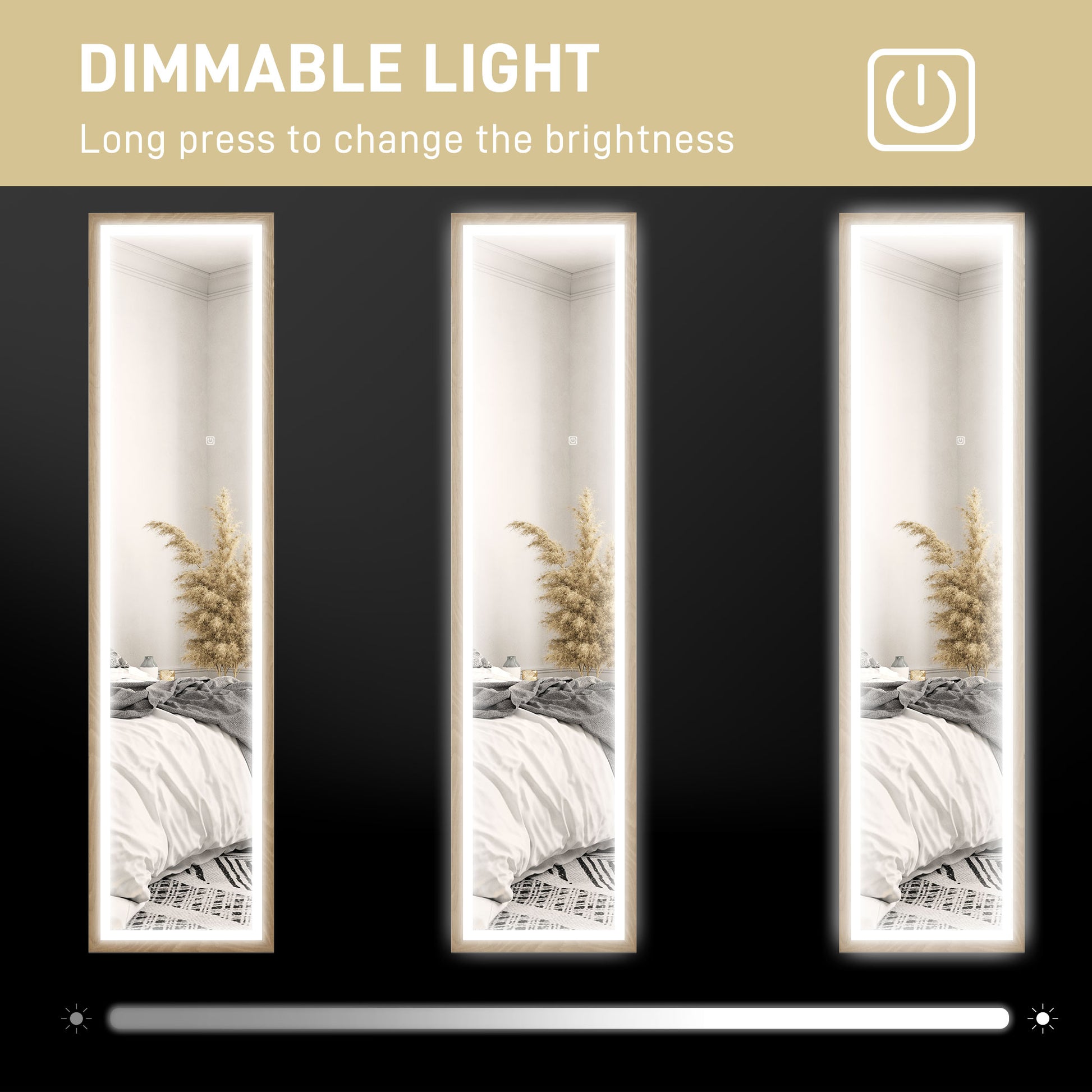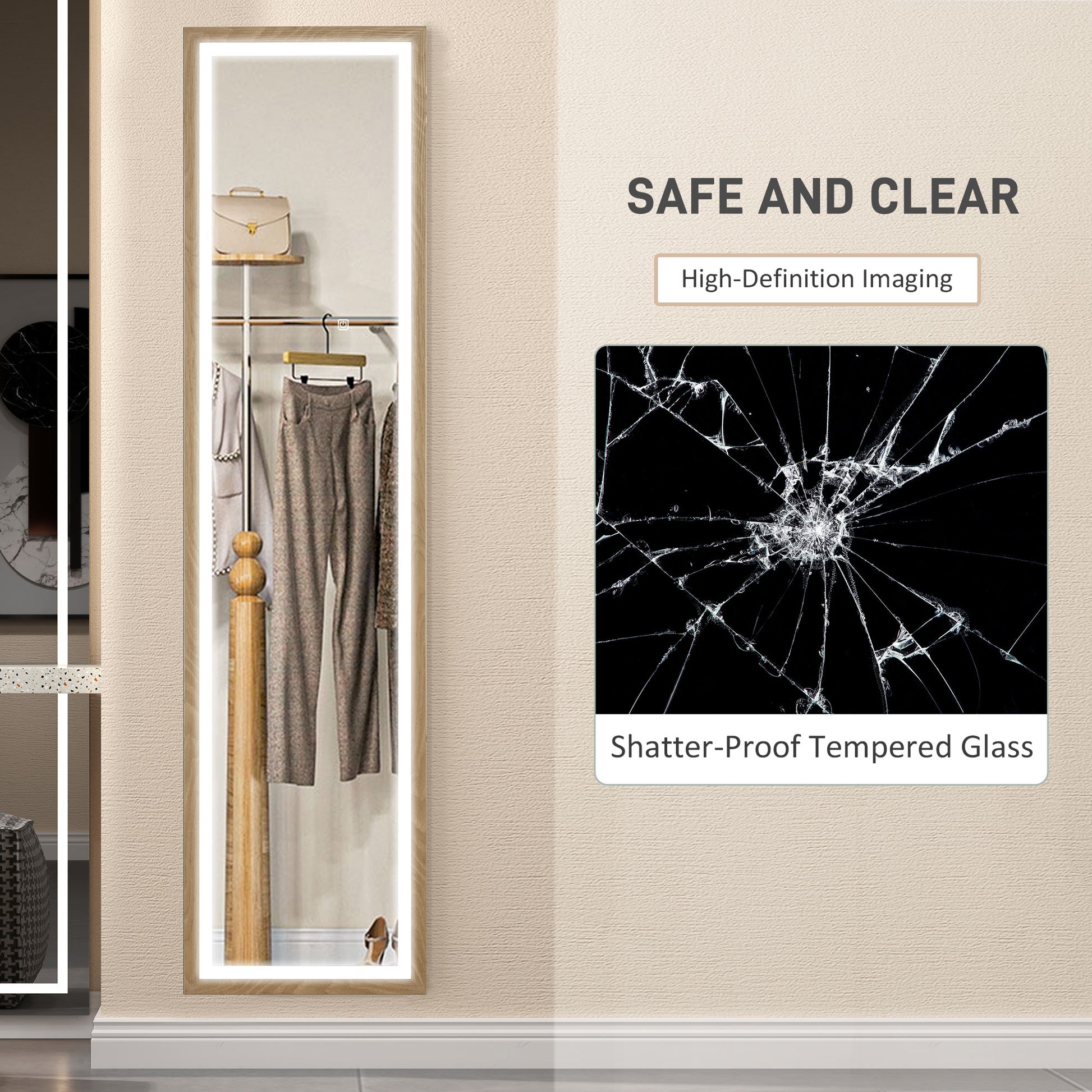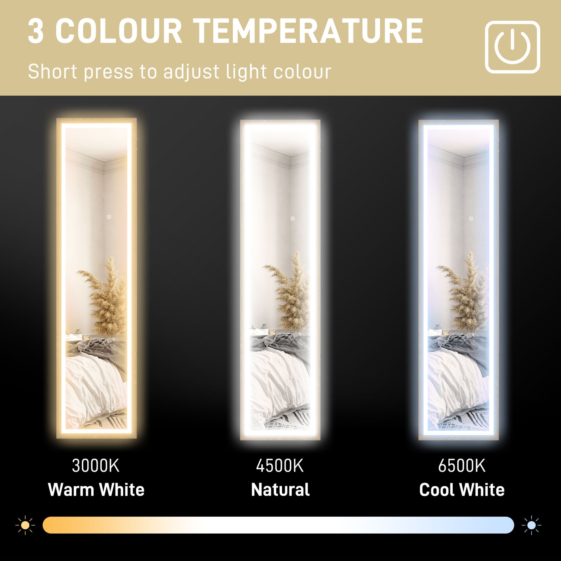 Getting ready, no matter the time of day, comes easy with this HOMCOM full length mirror. Thanks to the outer LED light you can see yourself easily when getting ready; choose between the warm white, natural or cool white colour with adjustable brightness. It can be used three ways—either attach to the wall, lean against the wall or leave it standing with the back leg. The wood-effect frame gives this big mirror a classic look and inside the thick mirror is shatter-proof to provide a clear view.