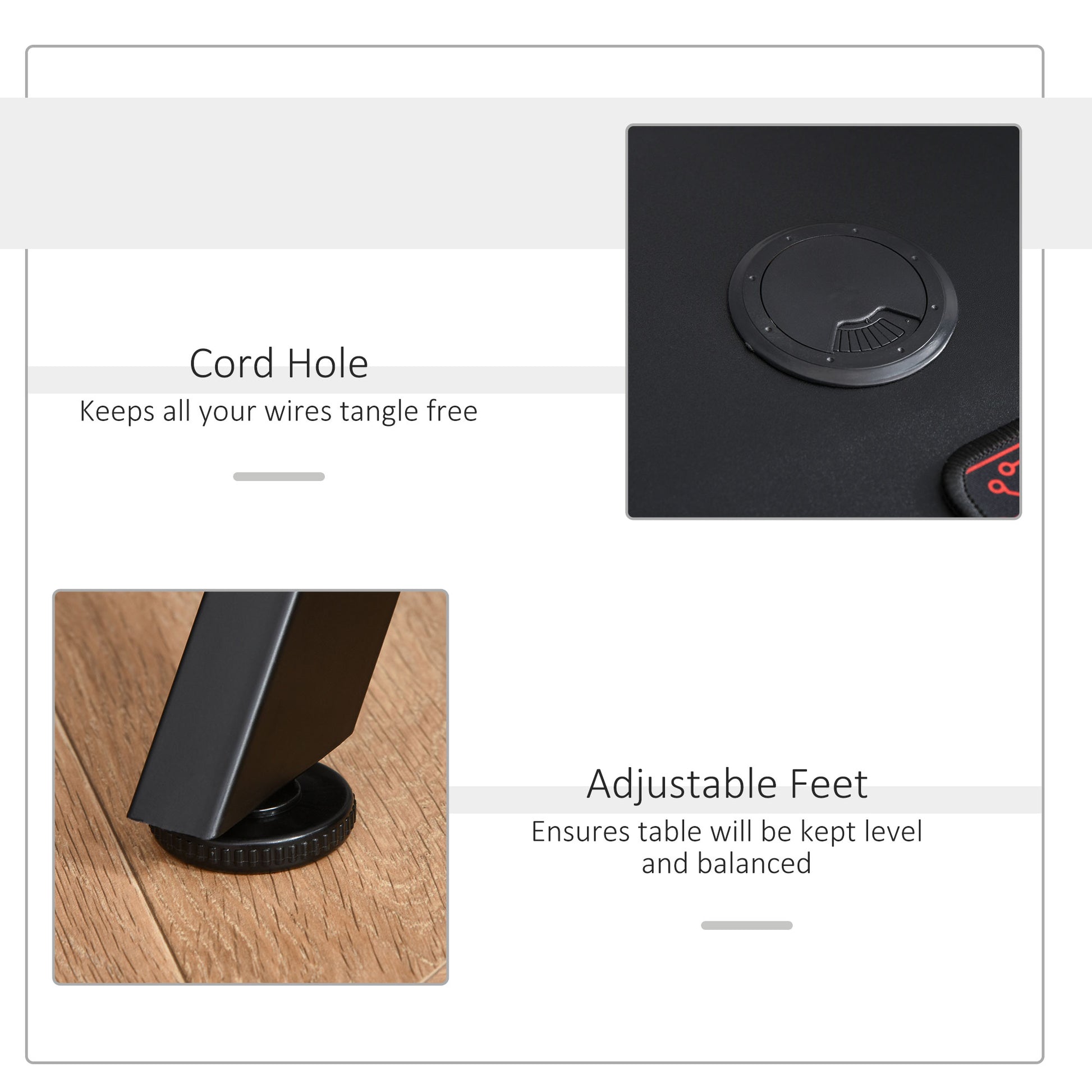 Make your gaming time extra fun with this HOMCOM stylish desk. It features a large main worktop, a cup holder and a headphone hanging hook, giving you everything you need in one spacious spot - meaning you won't have to move in the midst of a game. The adjustable feet ensures the table is kept level at all times. The perfect piece for your home gaming haven.