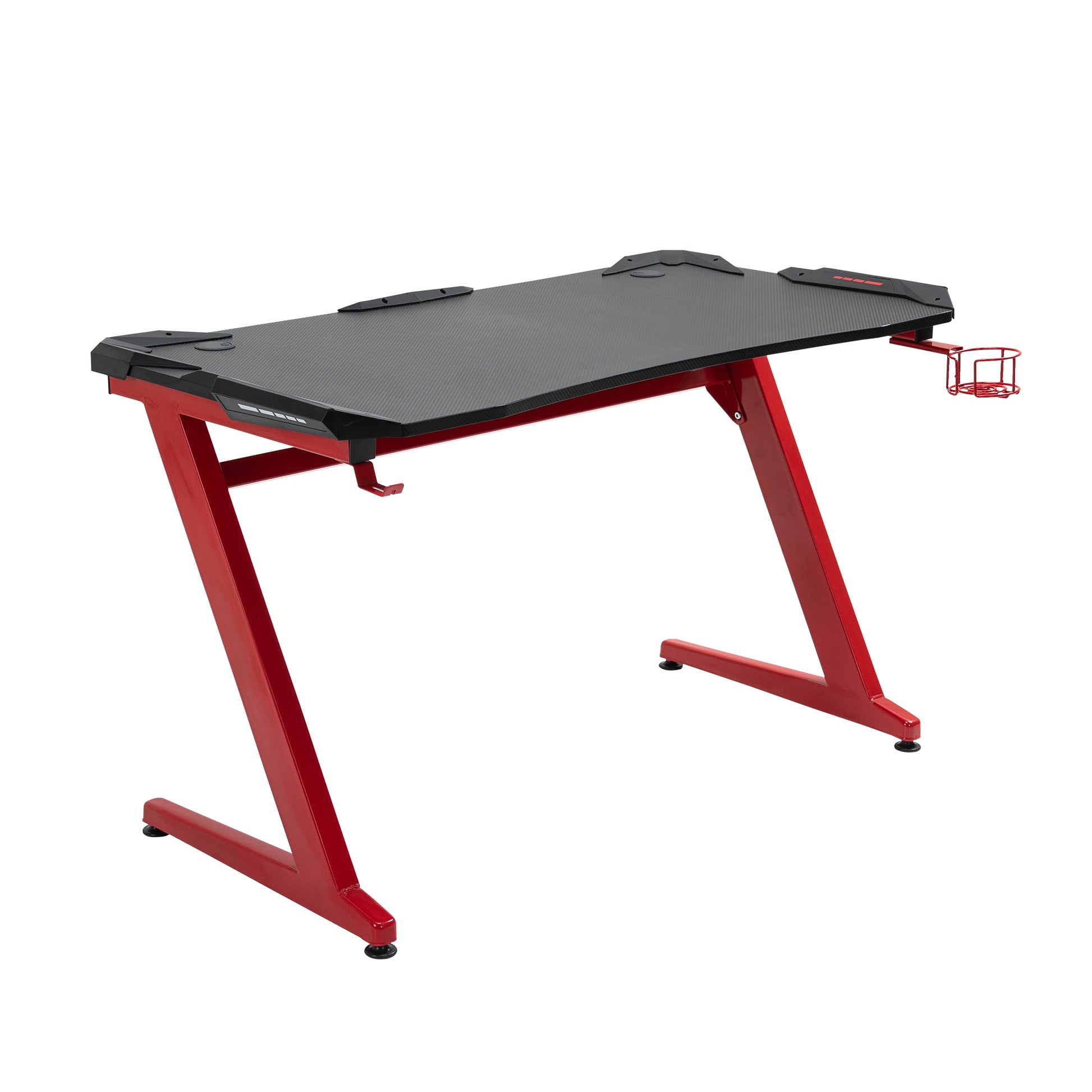 Gaming Desk, Ergonomic Home Office Desk, Gamer Workstation Racing Table, with Headphone Hook and Cup Holder, 122 x 66 x 86cm, Black and Red