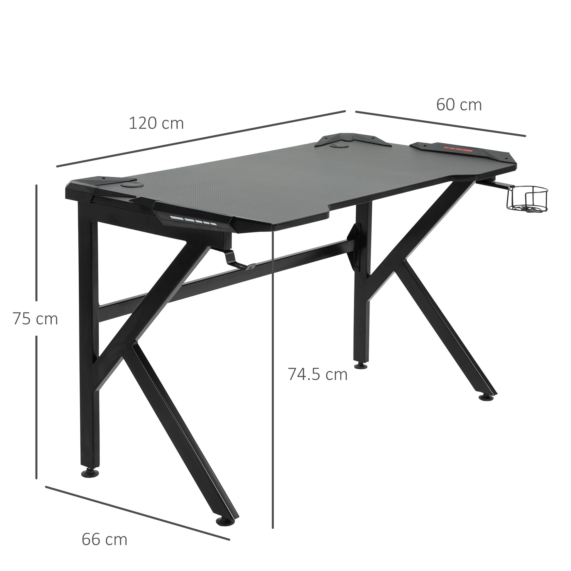 Maximize your winning potential, every time. Opt for this gaming table from HOMCOM to ensure that your winning streak isn't just down to luck. The computer table is made with a large table top, which provides plenty of room for you to play along freely and hold all your gaming equipment and essentials. The steel frame ensures a solid structure, in a 'K' shape with anti-slip feet to ensure continual stability. A simple and sleek design to bring even more excitement into your gaming times.