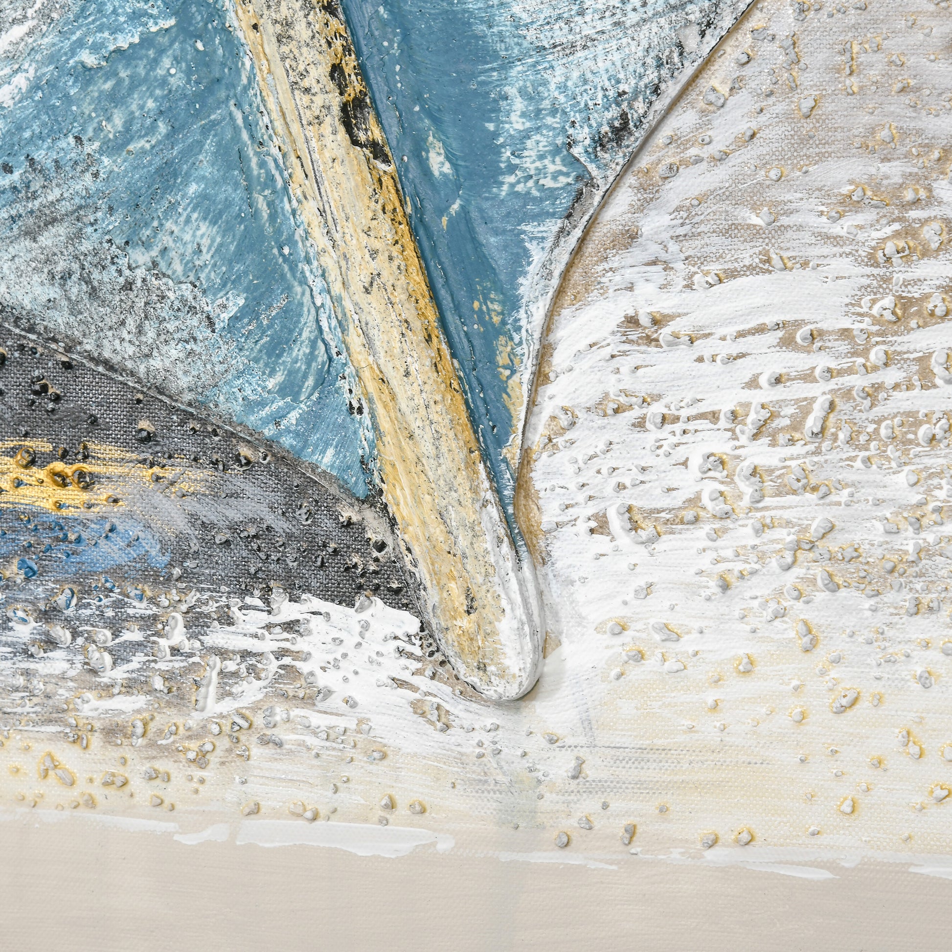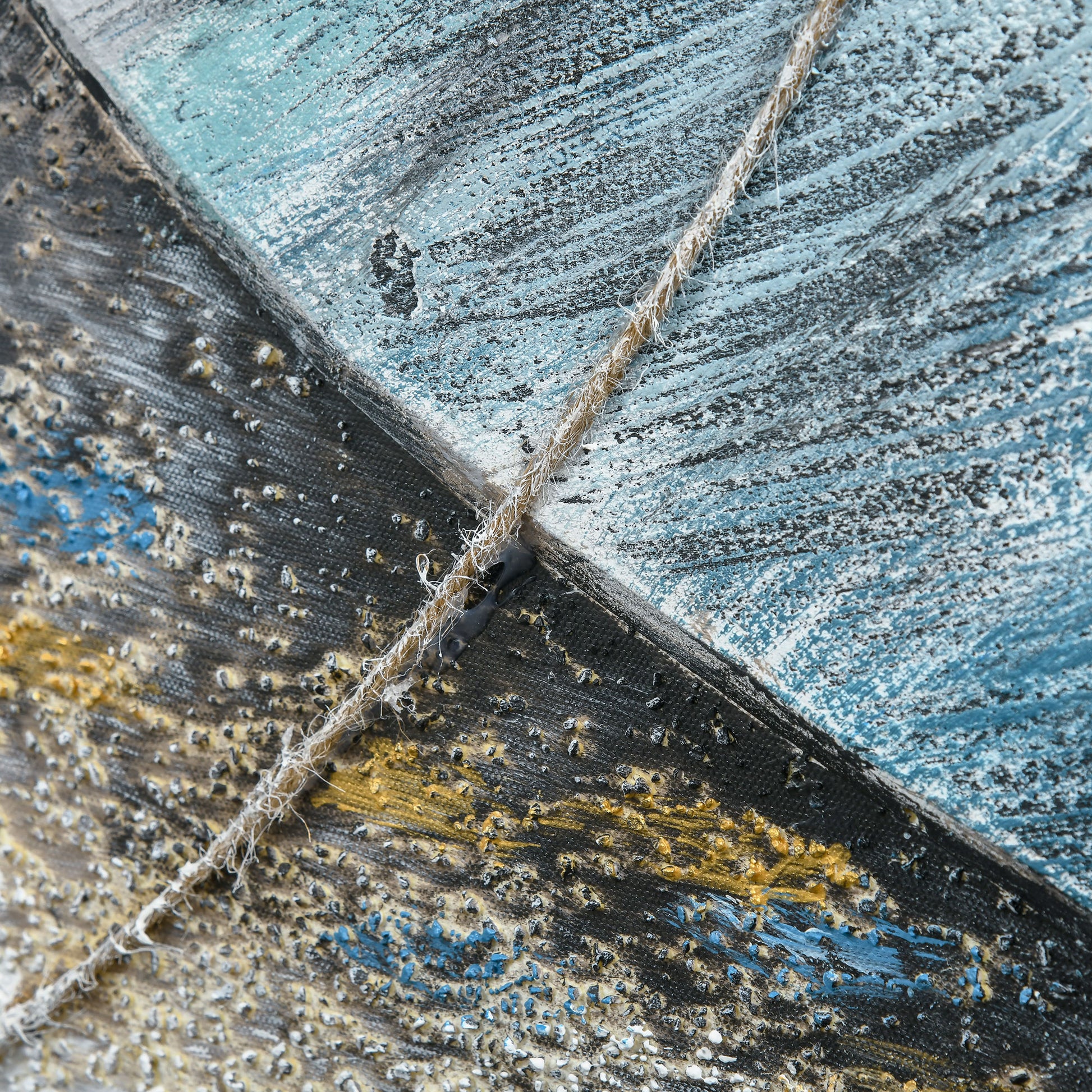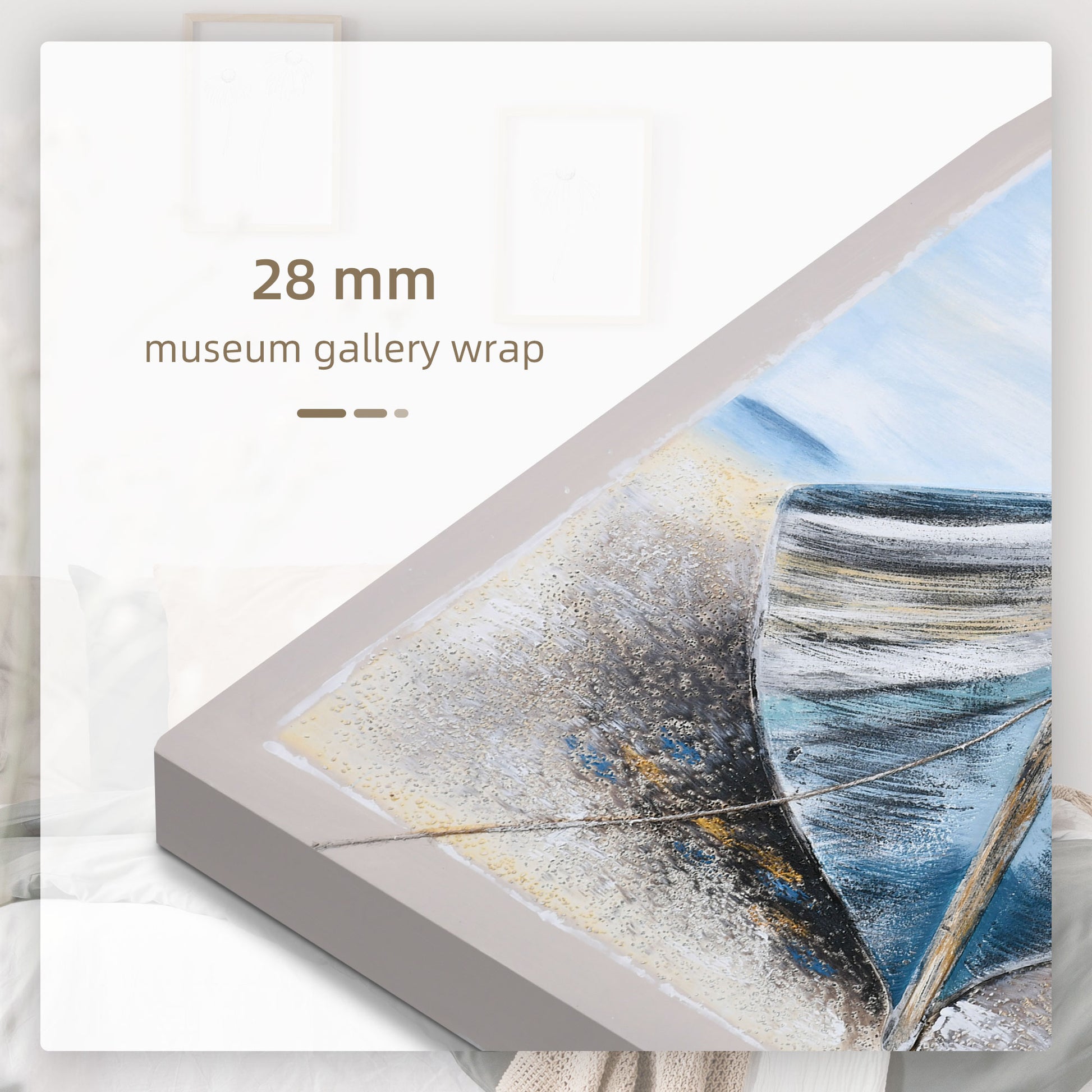 Hand-Painted Canvas Wall Art Blue Boat in the Beach, Wall Pictures for Living Room Bedroom Decor, 90 x 90 cm