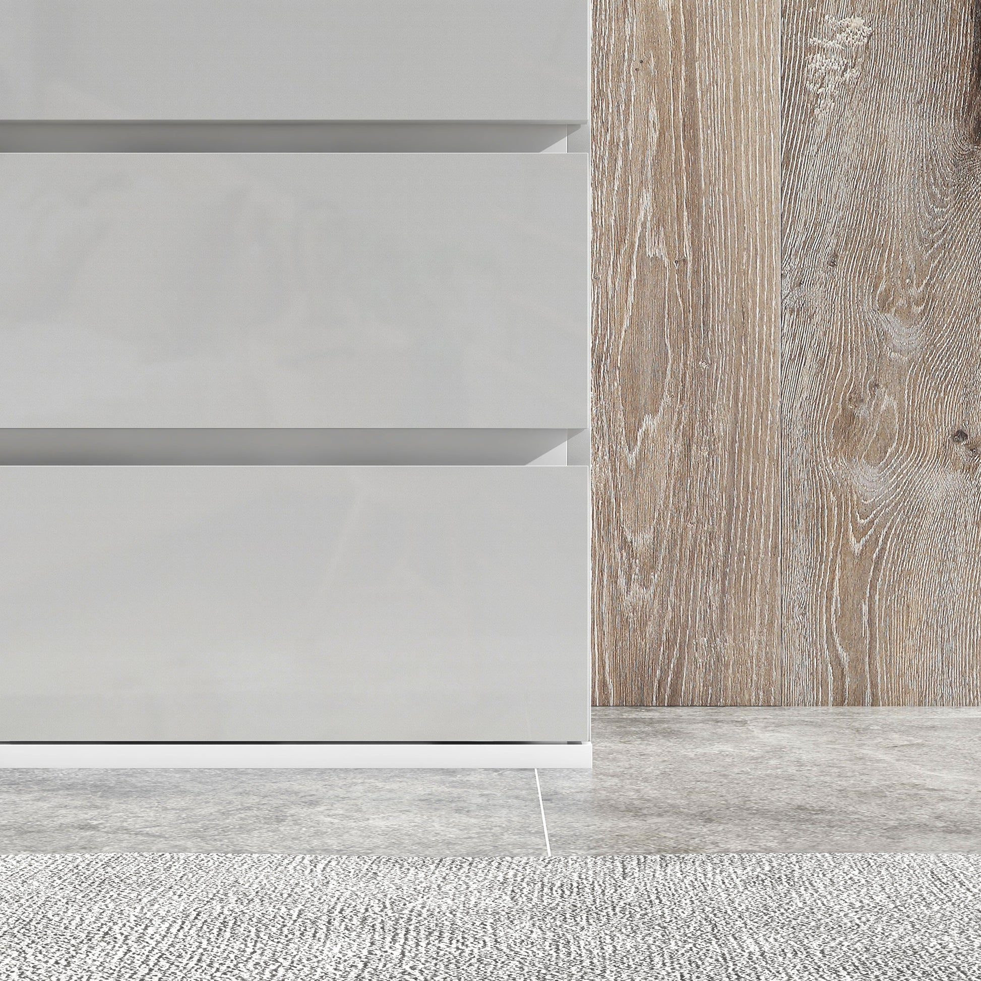Fresh, spacious and simple, this HOMCOM chest of drawers is the only way to keep your clothes stored and organised. It comes with five drawers, so there's plenty of space for keeping a variety of clothes and more stored. Look to its high gloss finish for style - the colour is versatile, so it can be matched with other colours easily. A handle-less design, simply push-click each drawer for smooth opening and closing.