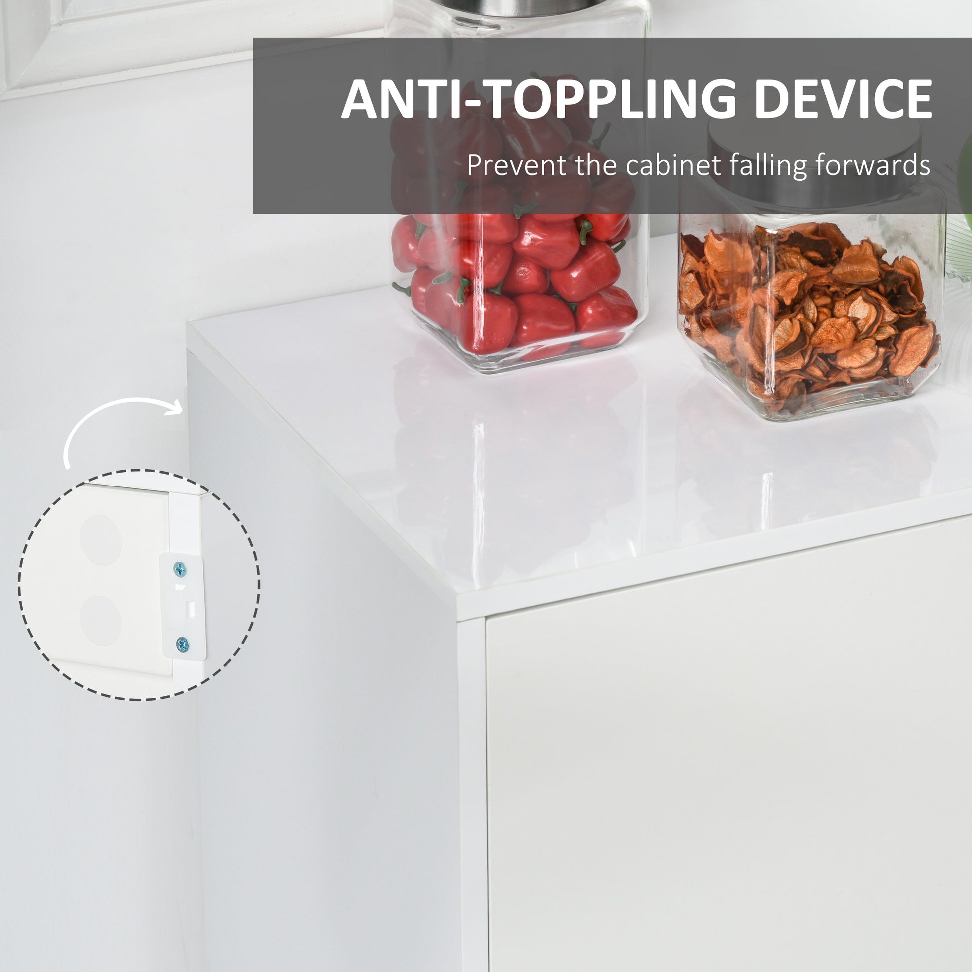 This HOMCOM large and oblong cabinet is a durable and stylish addition to every home, keeping your space clean and tidy with ease. It's made from MDF for a durable structure, with anti-tipping straps on the back for safety. The practical design, with the push-click drawers and cabinet doors makes them quick and effortless to open and close. The elevated base allows air to flow through for freshness. An effortless way to bring in sleek style into your living space.