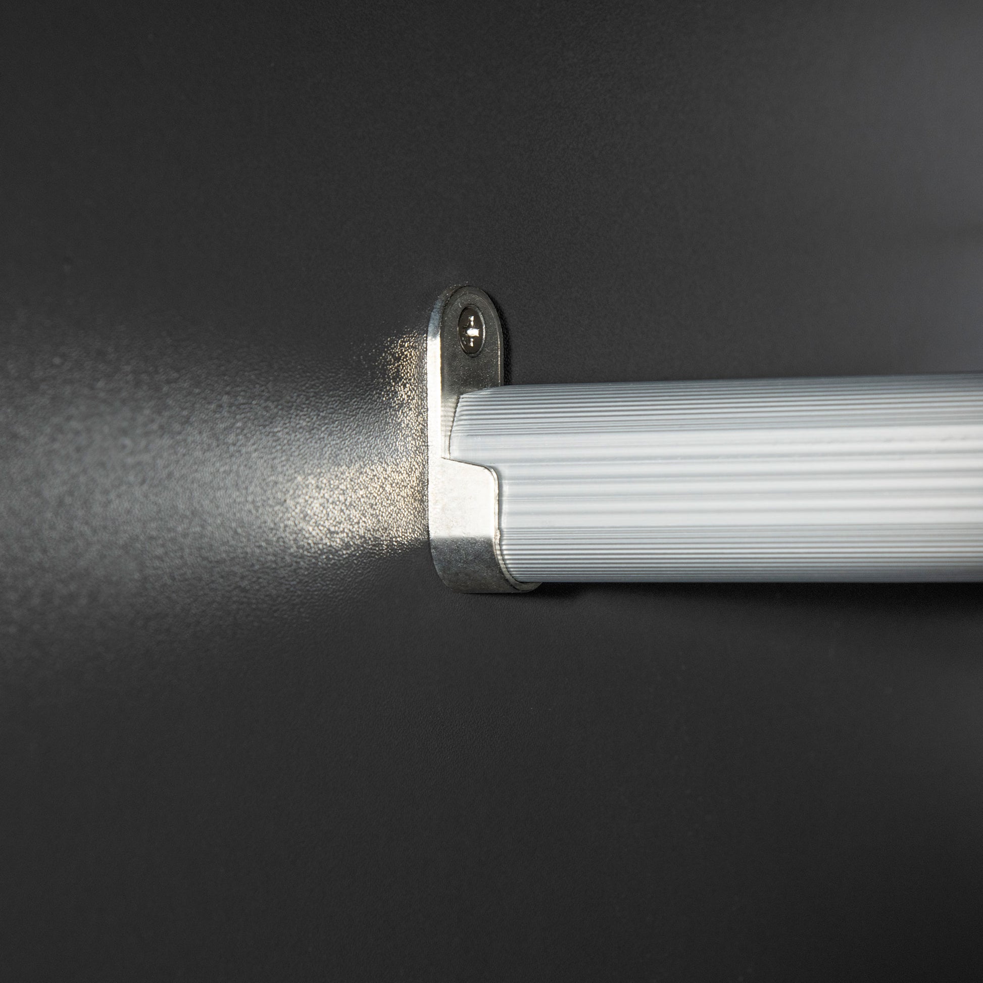 - Two-part design: hanging rail and top shelf