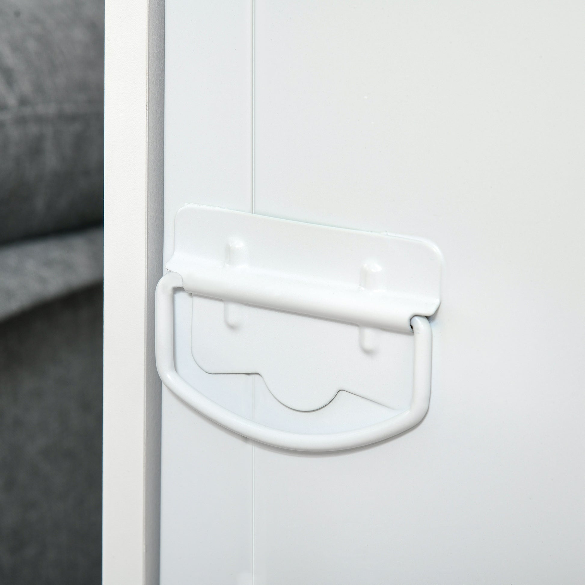 - Sturdy particle board frame, with a metal door for extra strength and protection
