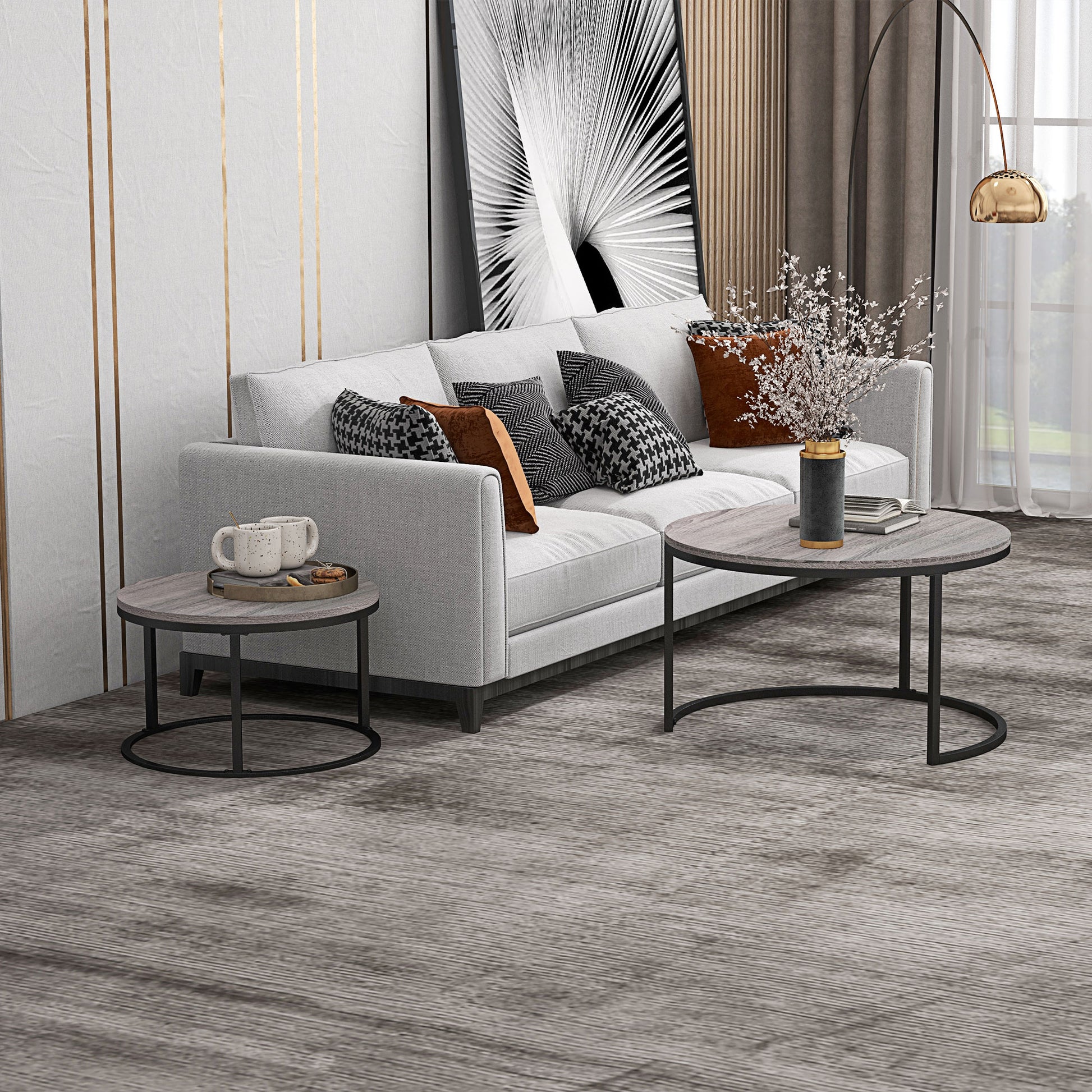 Industrial Nesting Coffee Table Set of 2, Round Coffee Tables, Living Room Table with Wood Effect Top and Steel Frame